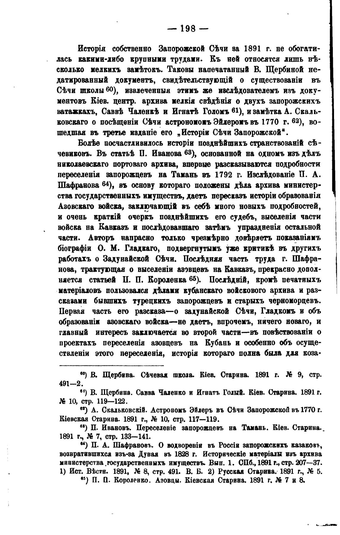 65) П. П. Короленко. Азовцы. Старина. 1891 г. 7 и 8.