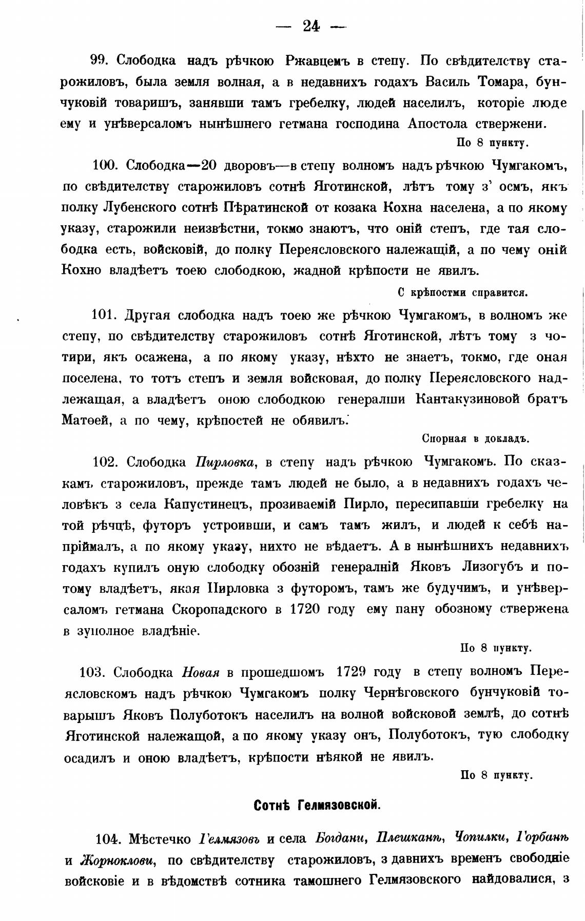 Яготинской належащой, а по якому указу онъ, Полуботокъ, тую слободку