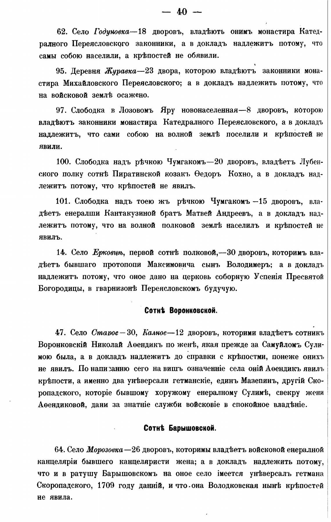 47. Село Старое— 30, Калное—12 дворовъ, которими влад±етъ сотникъ