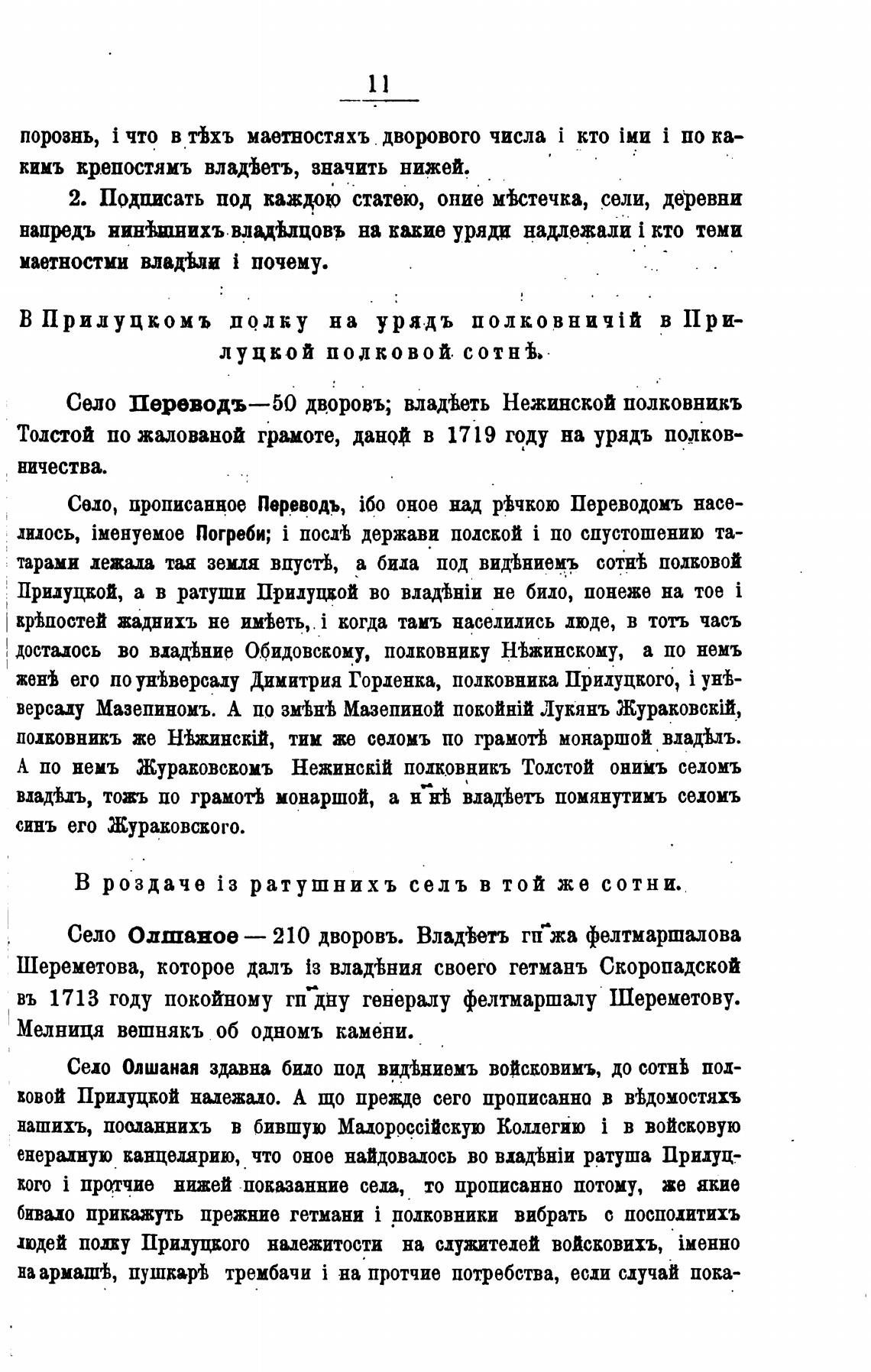 Село Переводъ—5О дворовъ; влажть Нежинской полковнивъ
