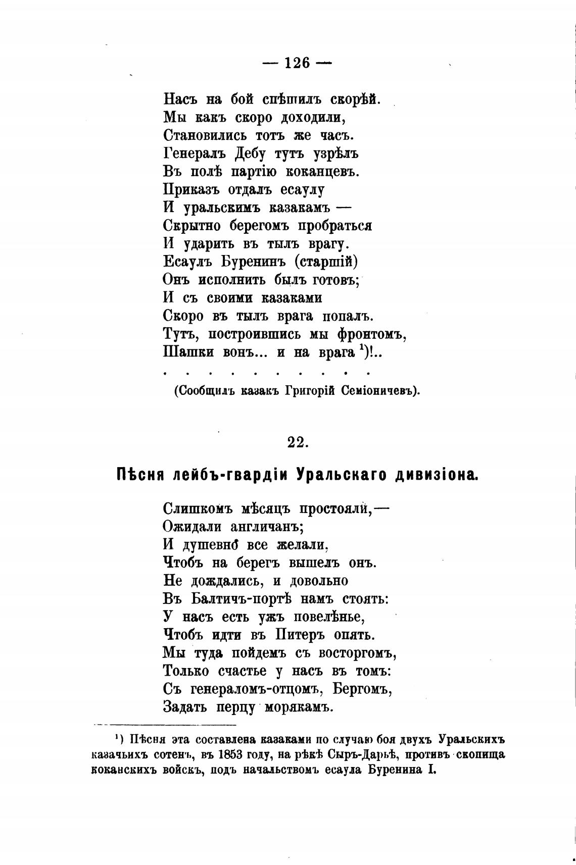 1) П*сня эта составлена казаками по случаю боя двухъ Уральскихъ