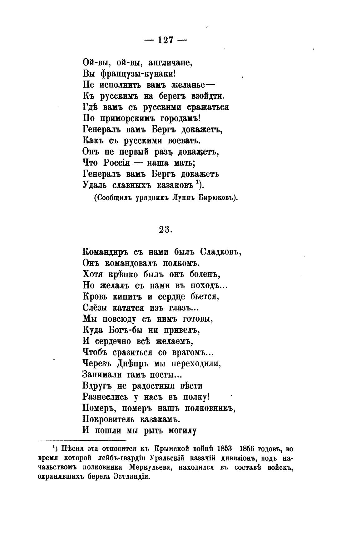 1) ПТсня эта относится кь Крымской B0tiH'h 1853 - 1856 годовъ, во