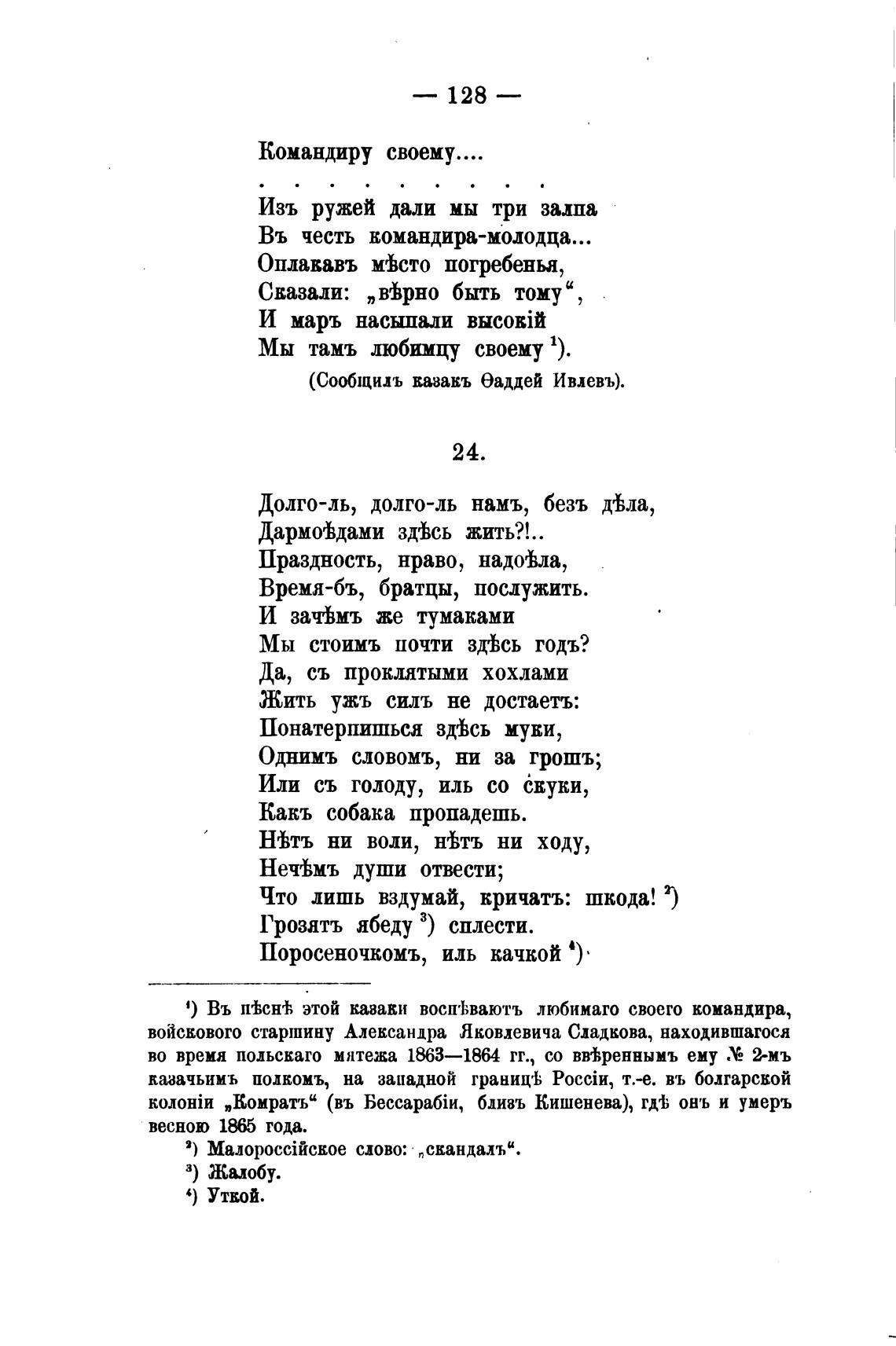 1) Въ 11'hcwh этой казаки восп•Ьваютъ любимато своего командира,