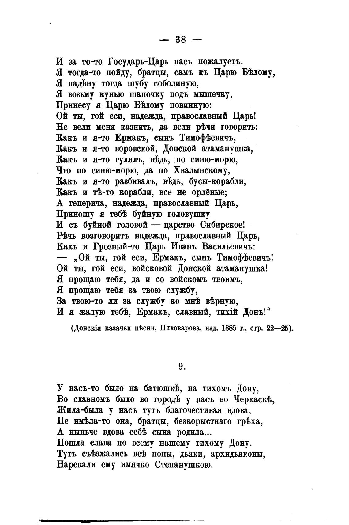 казачьи пТсни, Пивоварова, изд. 1885 г., стр. 22—25)-