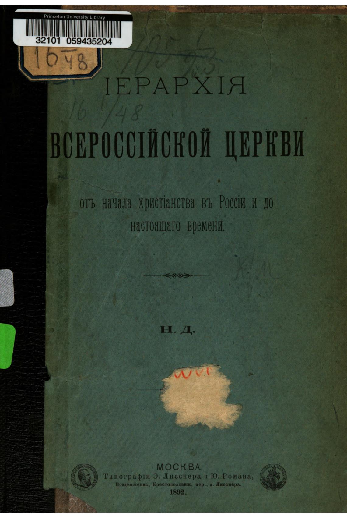 отъ начала христЈанства въ Росст и до