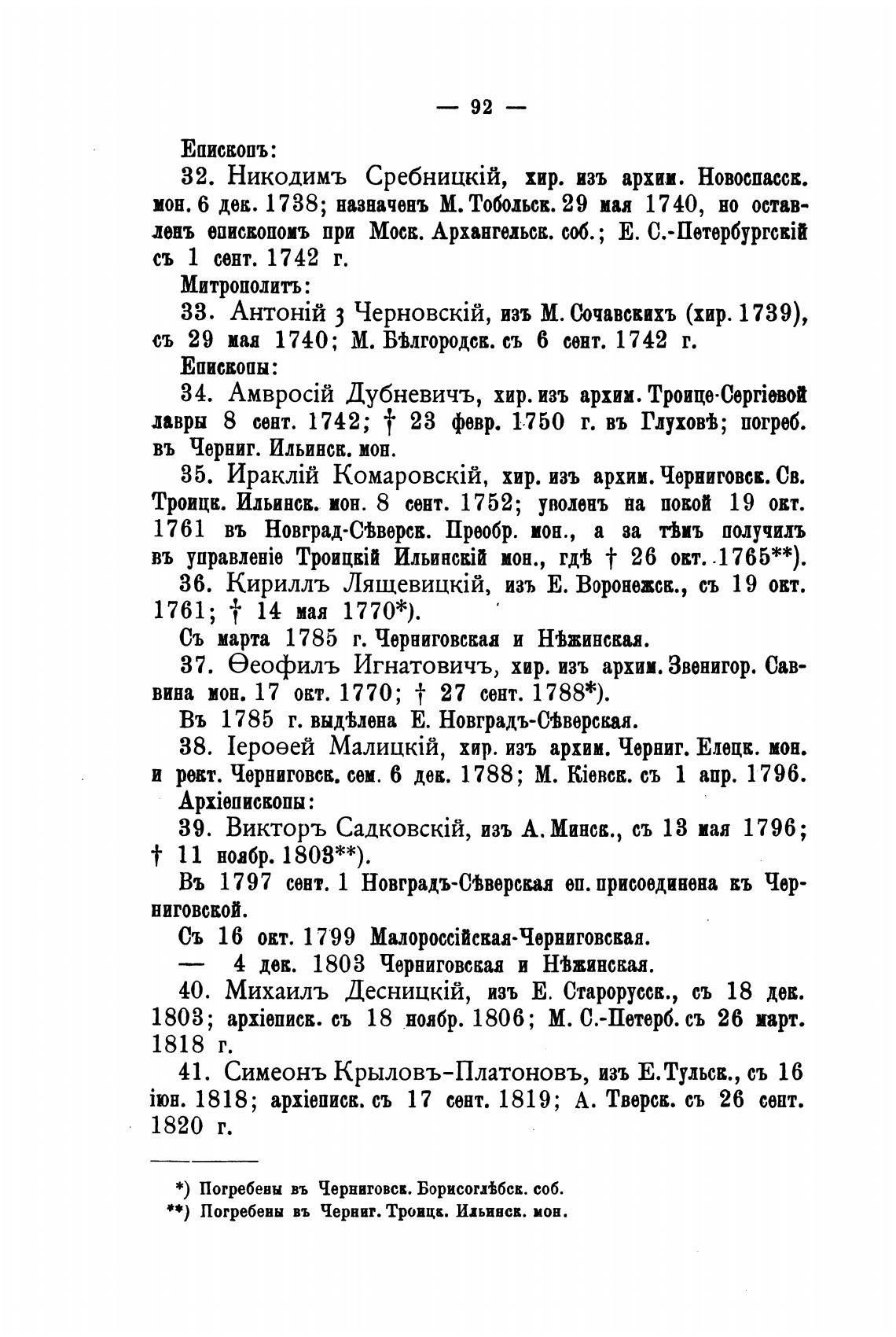 и рект. Чернигова. сем. 6 дек. 1788; М. ki6BcE. съ 1 апр. 1796.