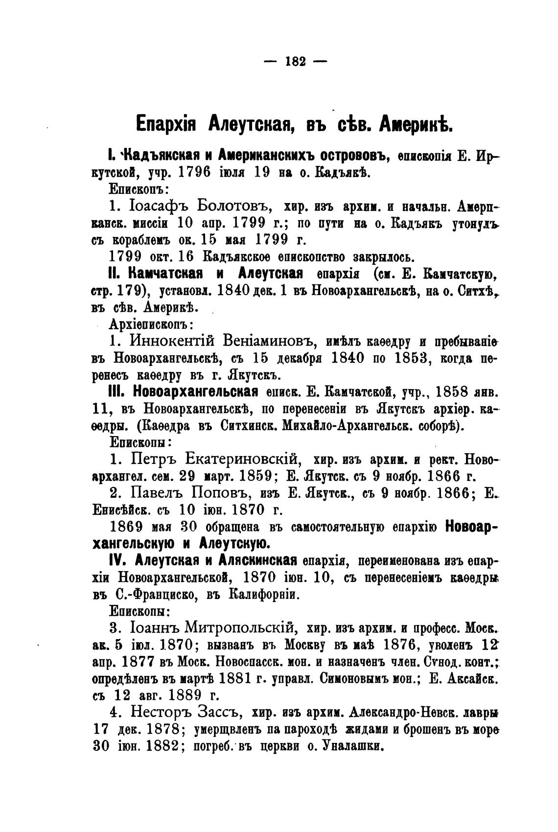 И. •Кадъякская и Американскихъ острововъ, епискотйя Е. ир-