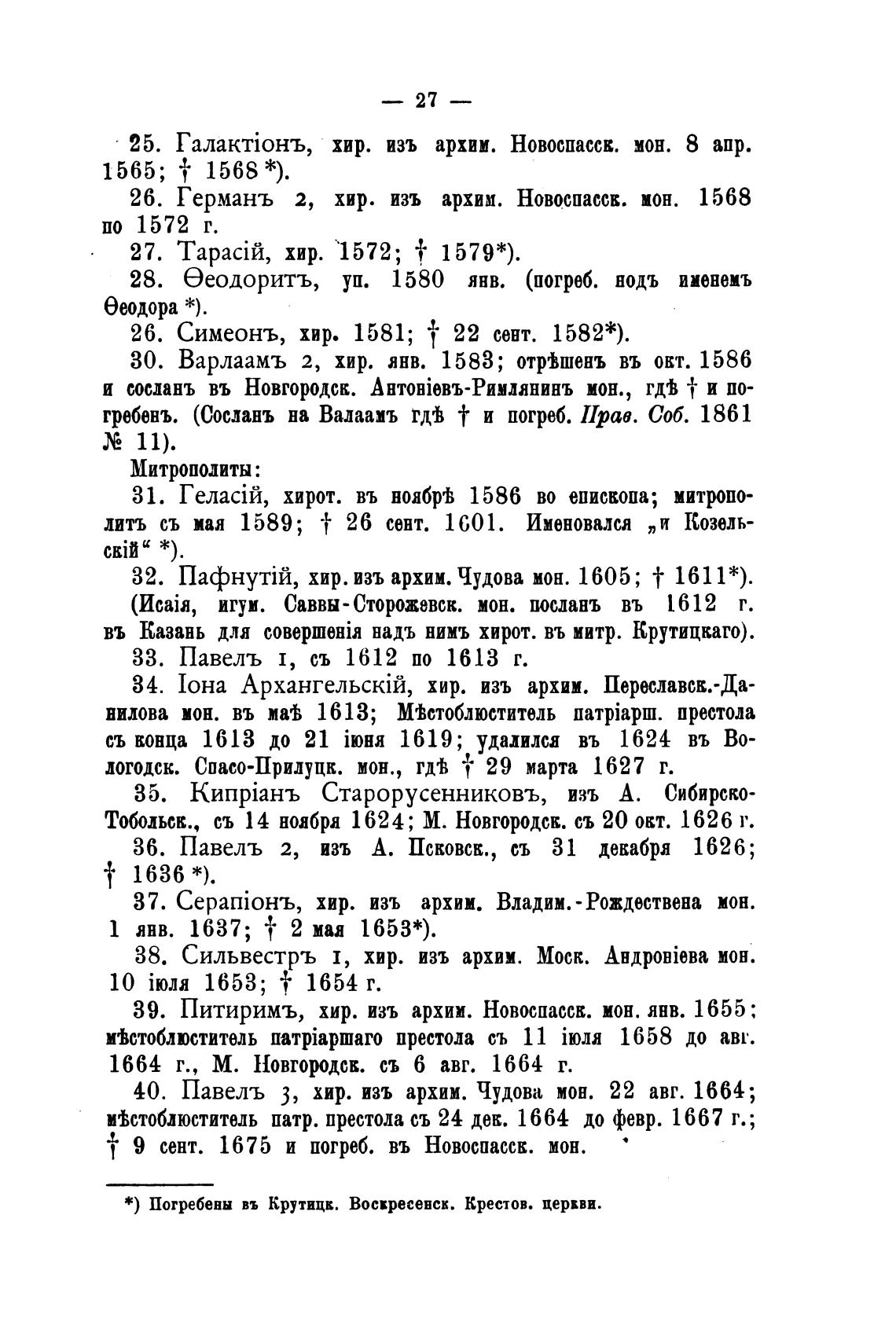 * ) Погребены въ Крутицк. Воскресенск. Крестов. церии.