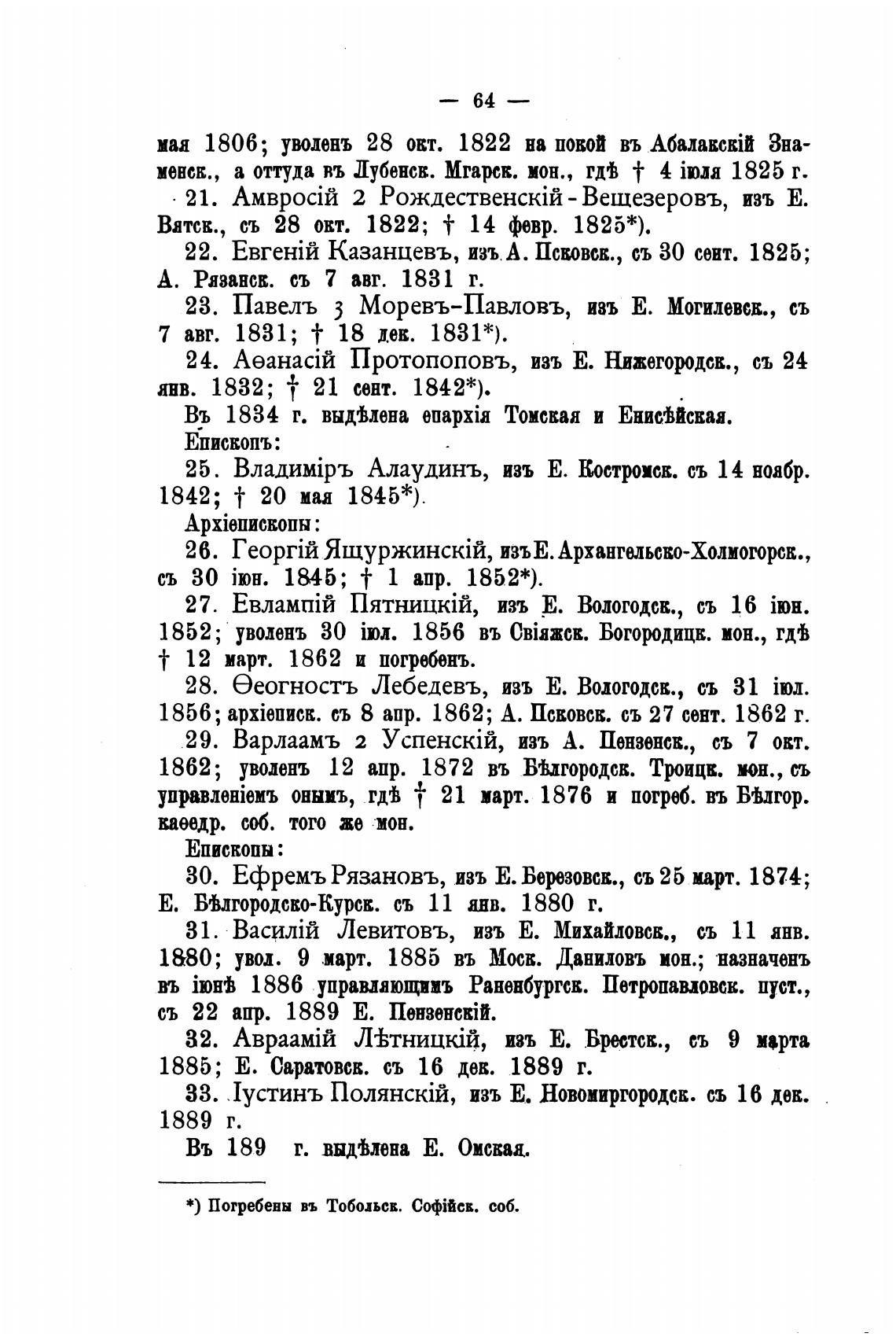 Въ 1834 г. выдЈлена euapxia Томская и Енисјйсвая.