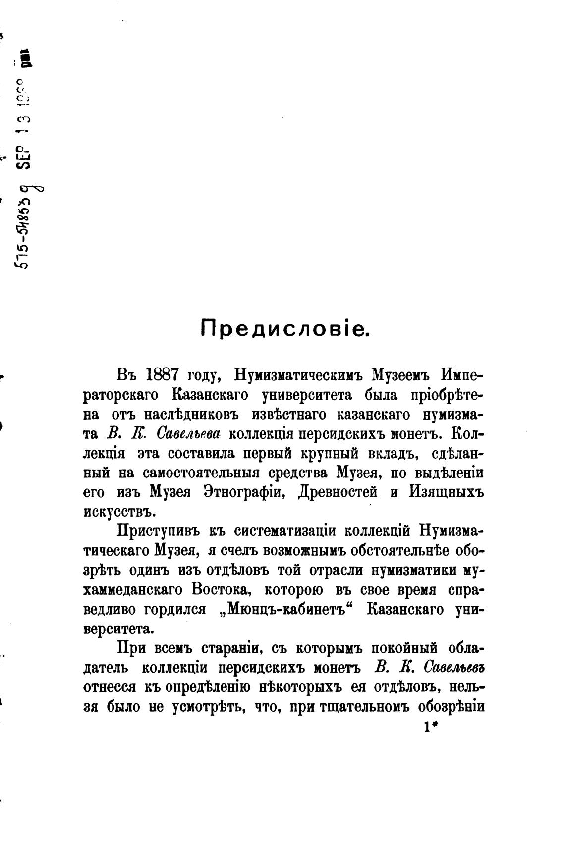 датель персидскихъ монетъ В. Л. Савельева
