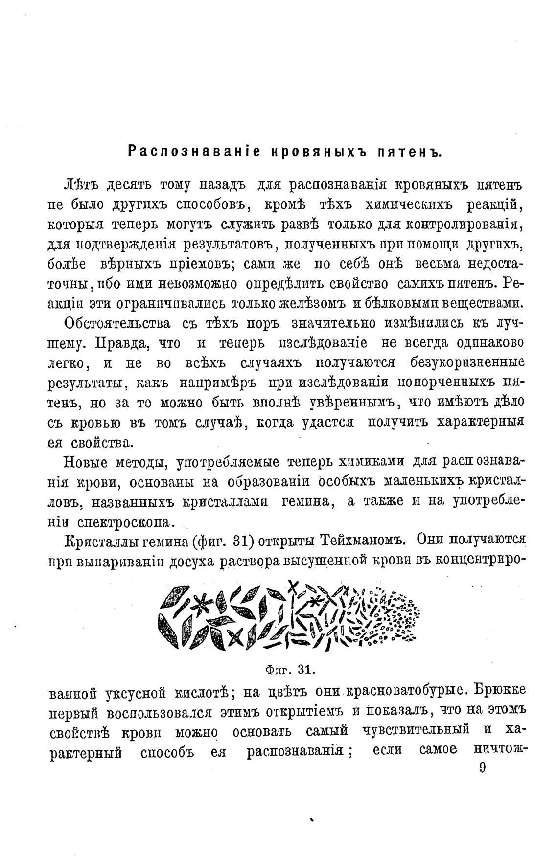 Кристаллы гемина (фиг. 31) открыты Тейхманомъ. Они получаются