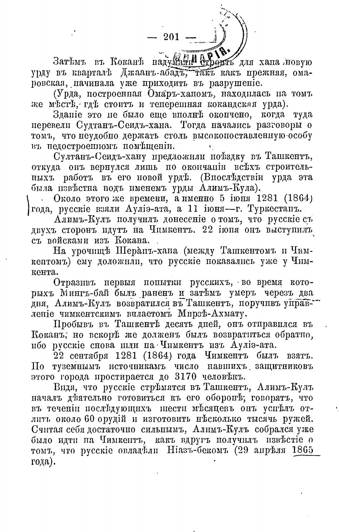 22 сентября 1281 (1864) года Чимкентъ быль взять.