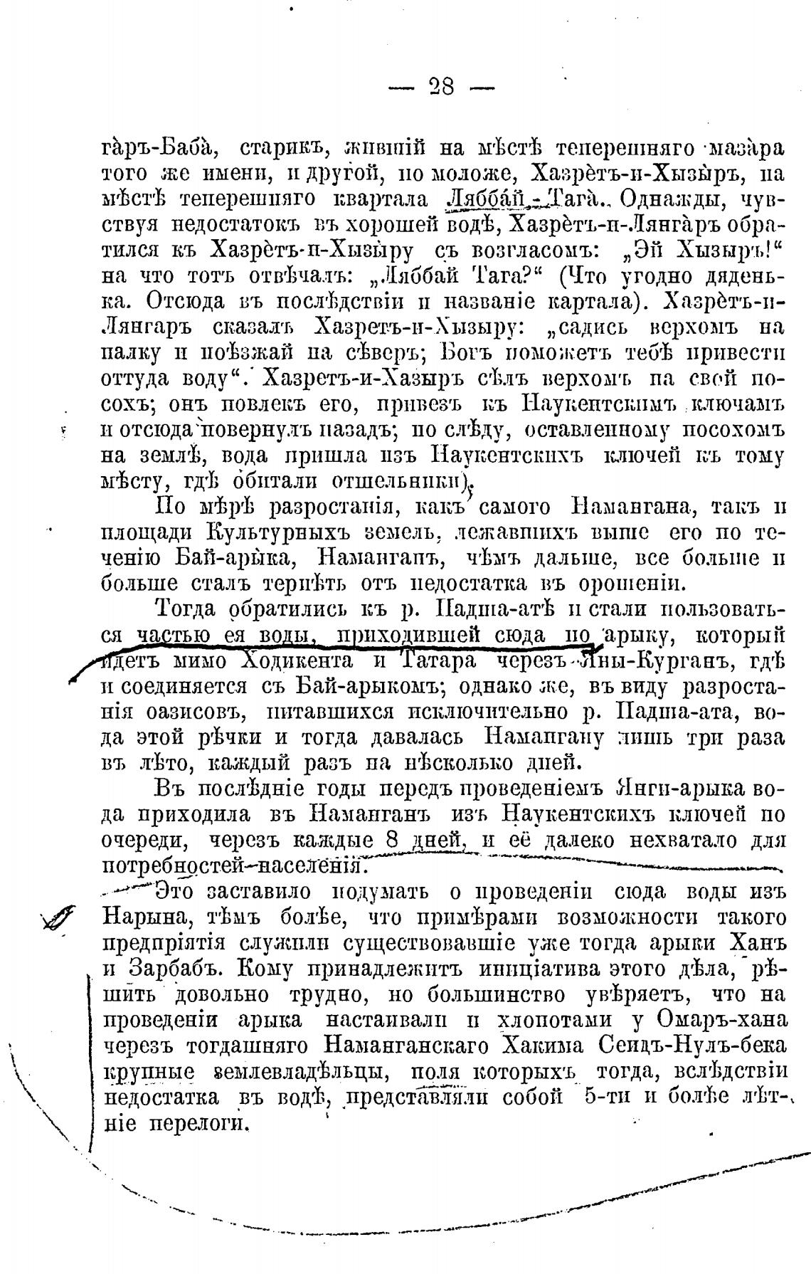 арыка настаивалп н хлопотами у Омаръ-хана
