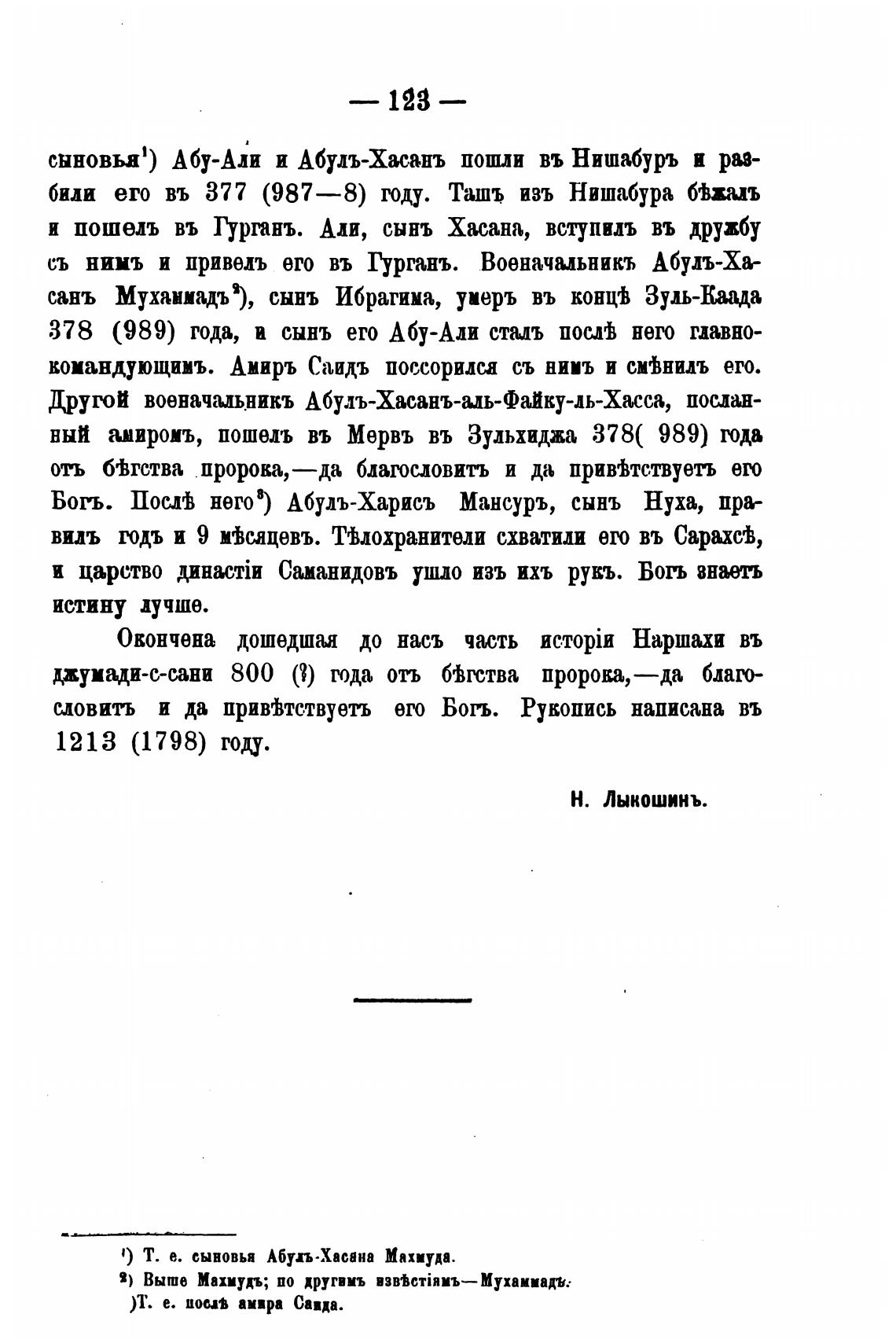 Окончена дошедшая до насъ часть Наршахи въ