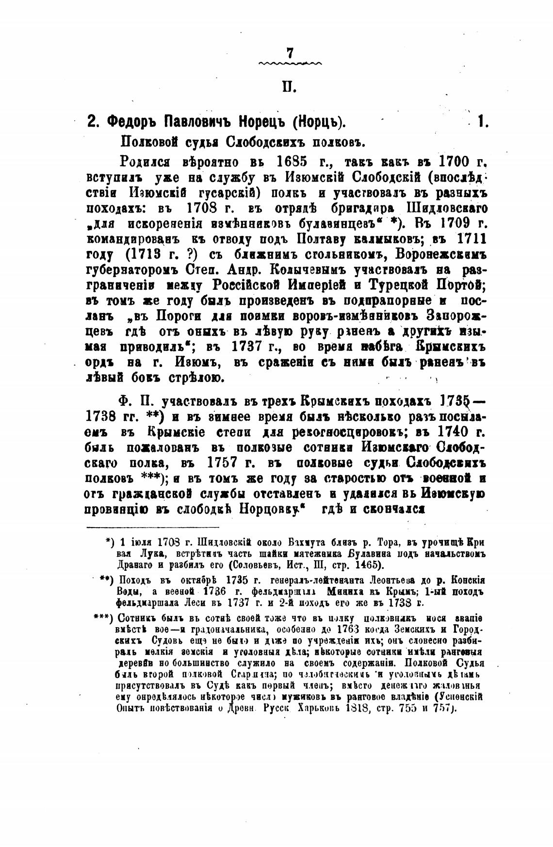 походахъ: въ 1708 г. въ отрядђ бригадира Шидловсввго