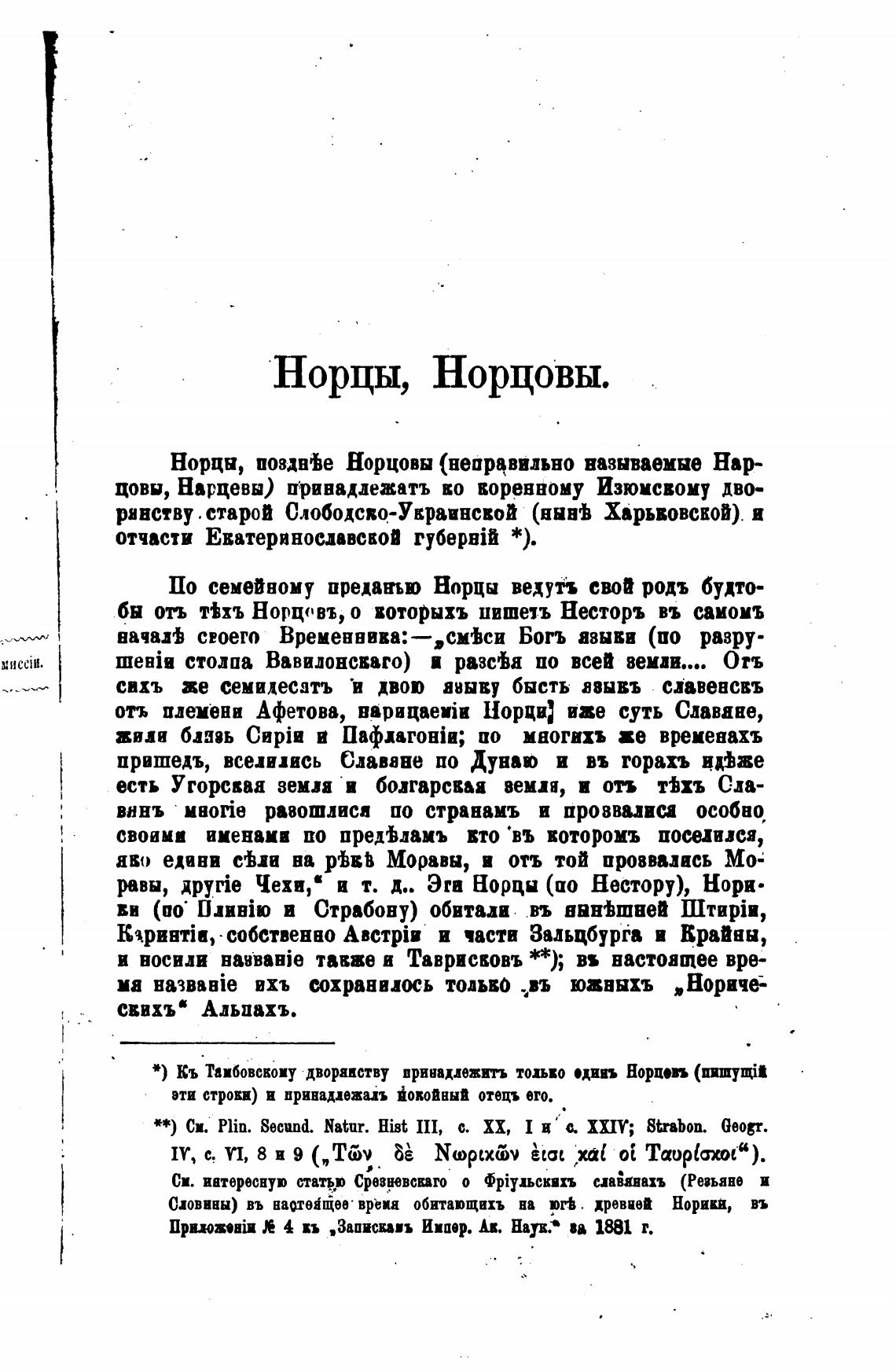 По семейному предшью Норцы ведутъ свой родъ будто-
