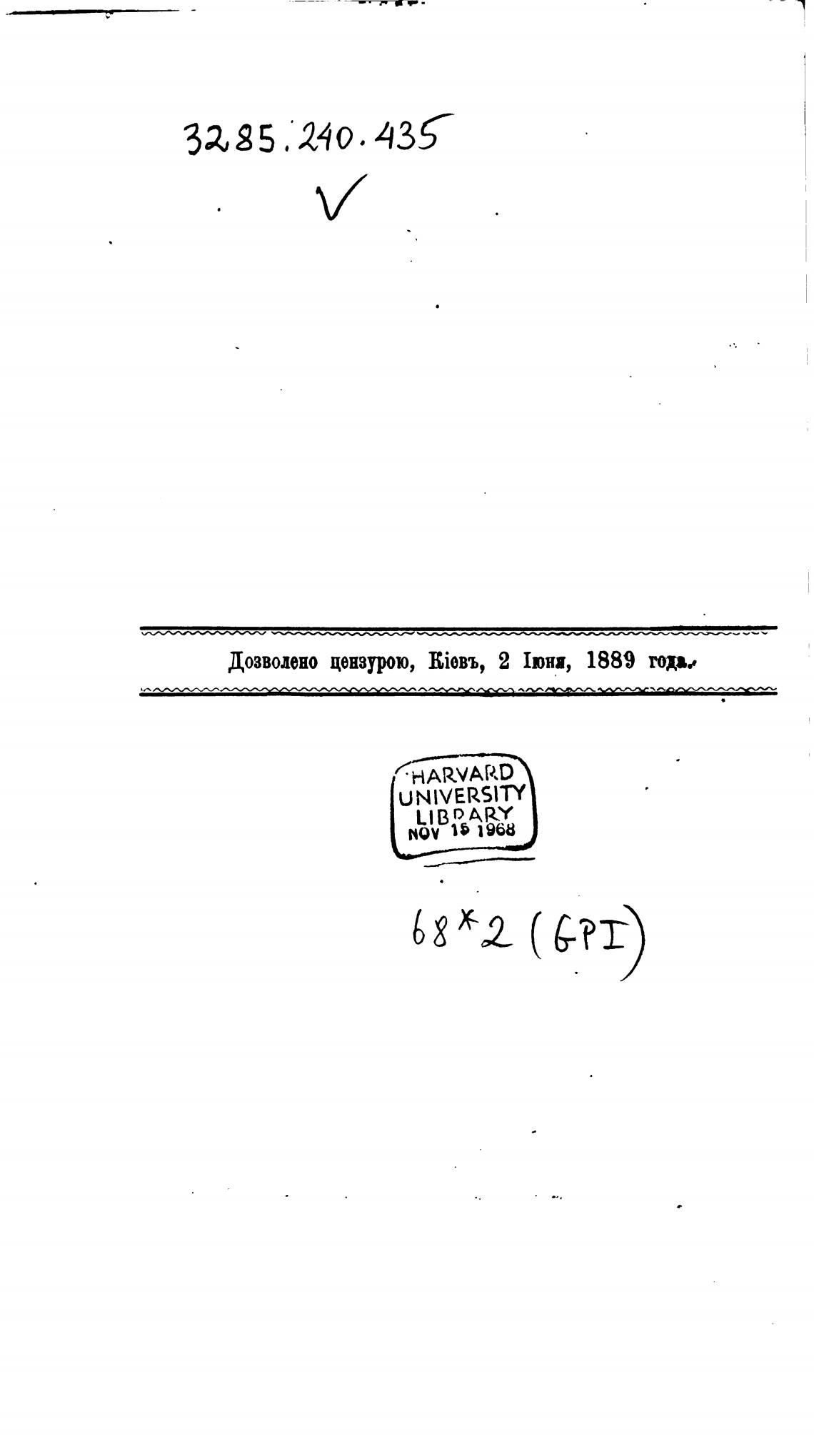 Дозволено цензурою, Жовъ, 2 1юни, 1889 года..