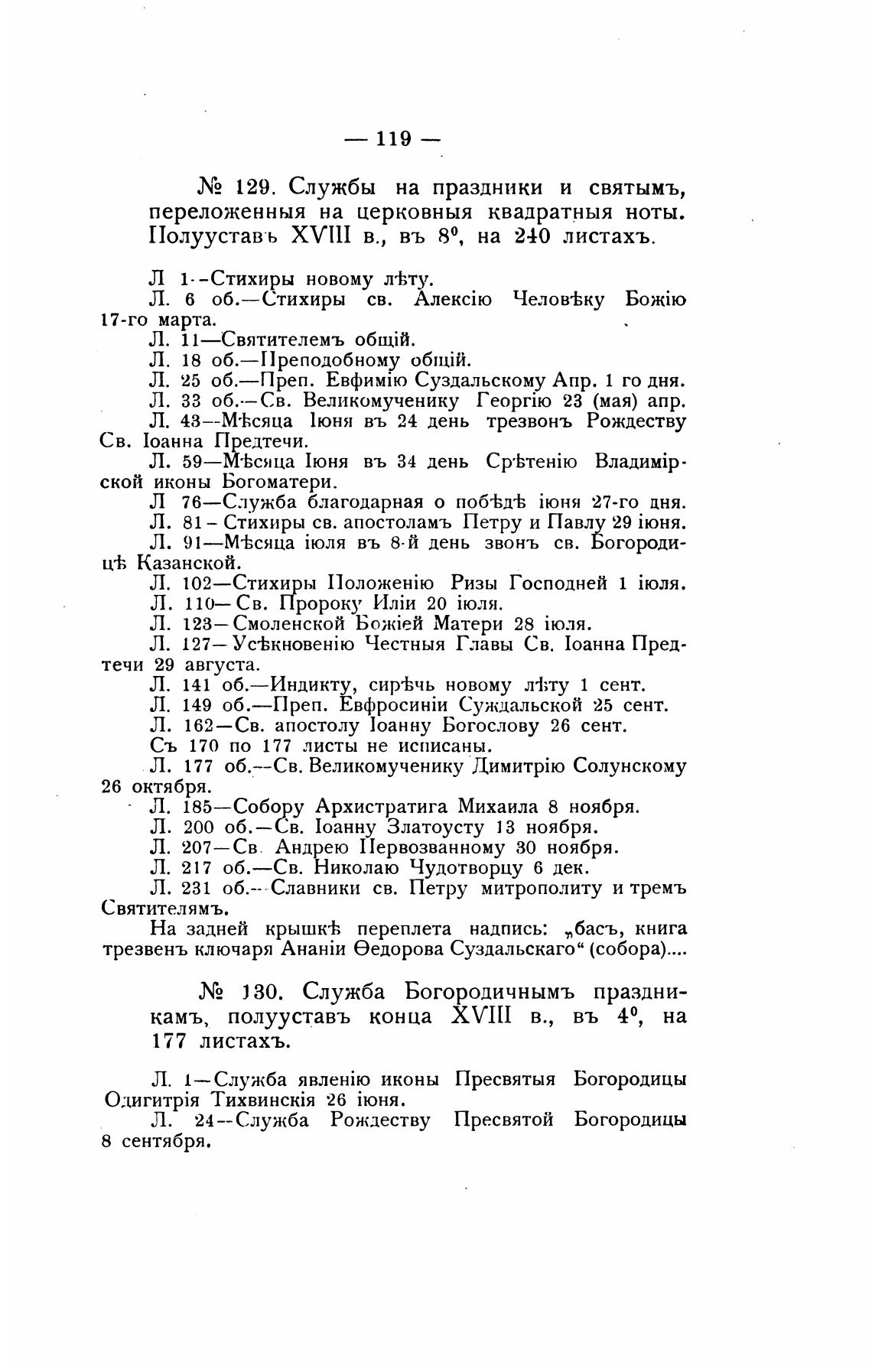.N2 129. Службы на праздники и святымъ,