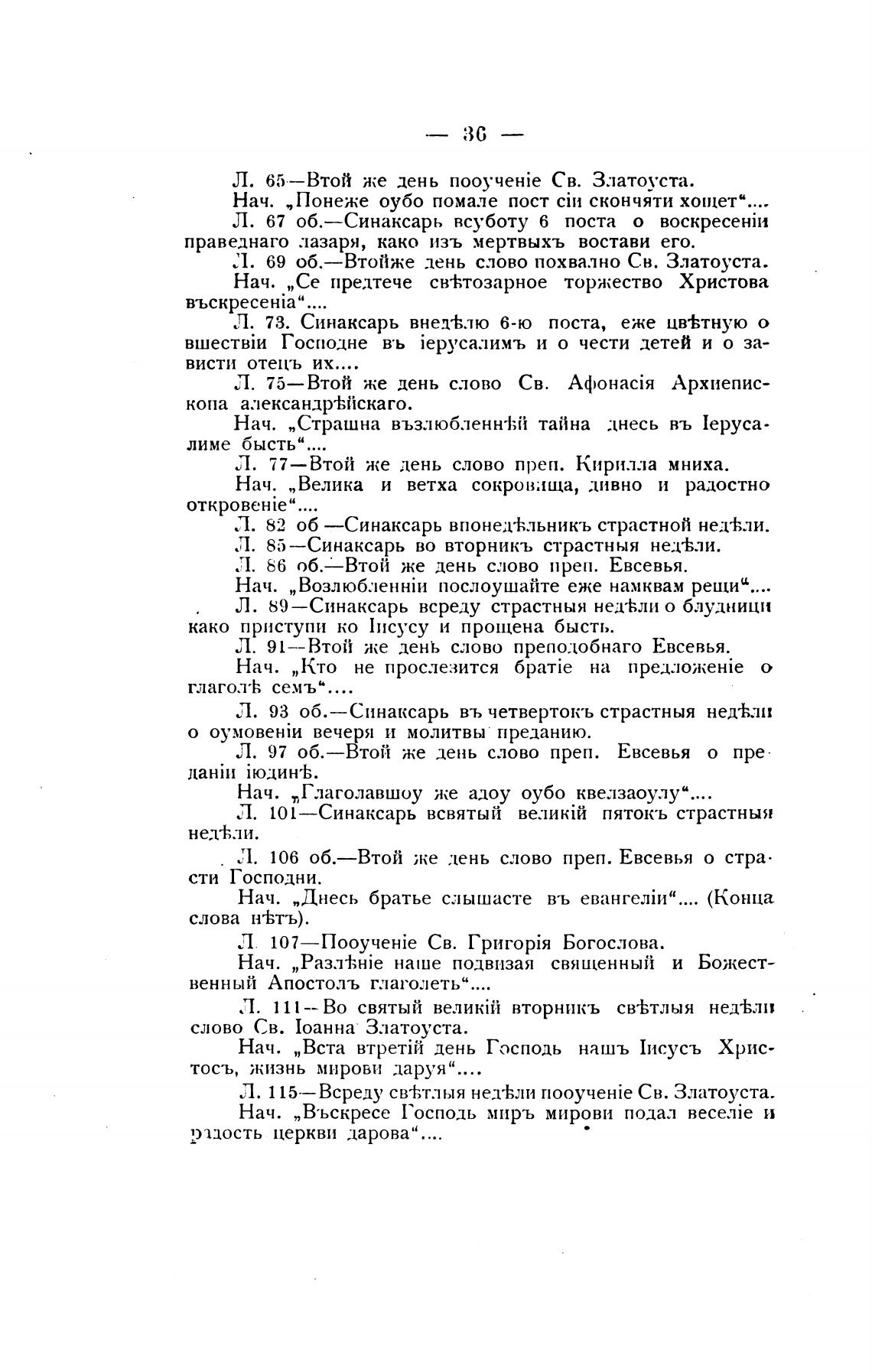 Л. 69 об.—Втойже лень слово похвално Св. Златоуста.