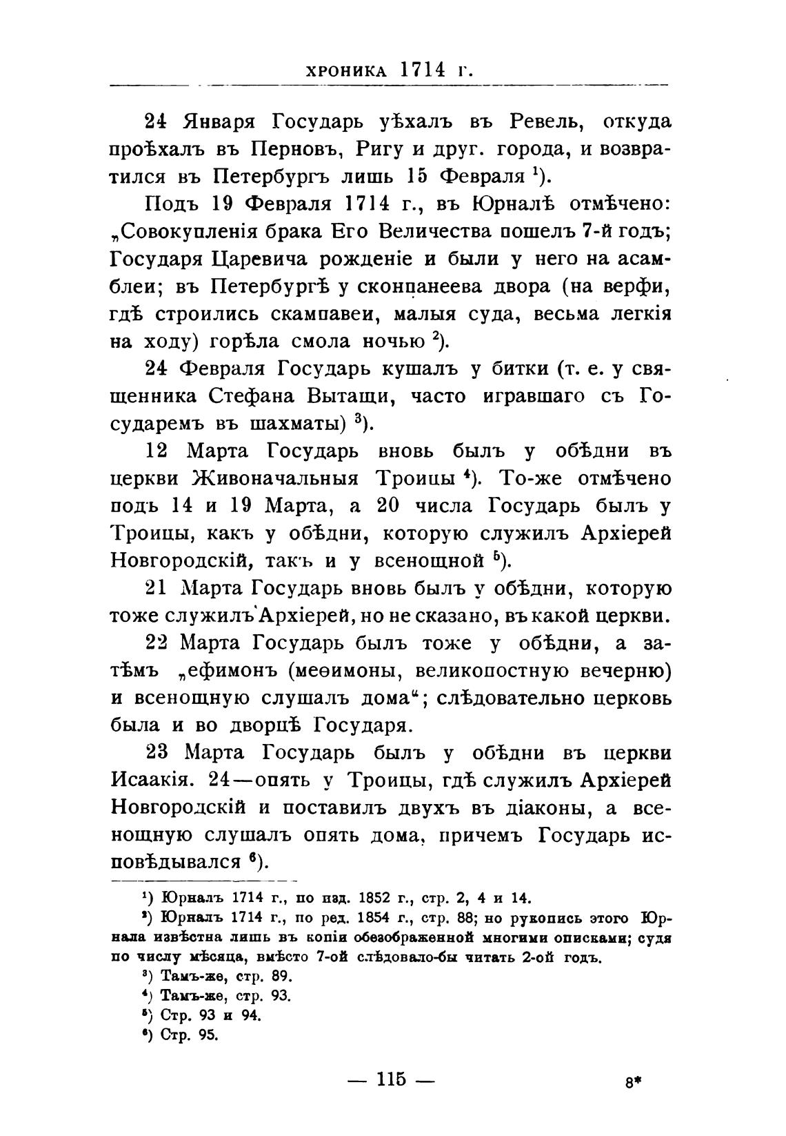 1) Юрналъ 1714 г., по ввд. 1852 г., стр. 2, 4 и 14.