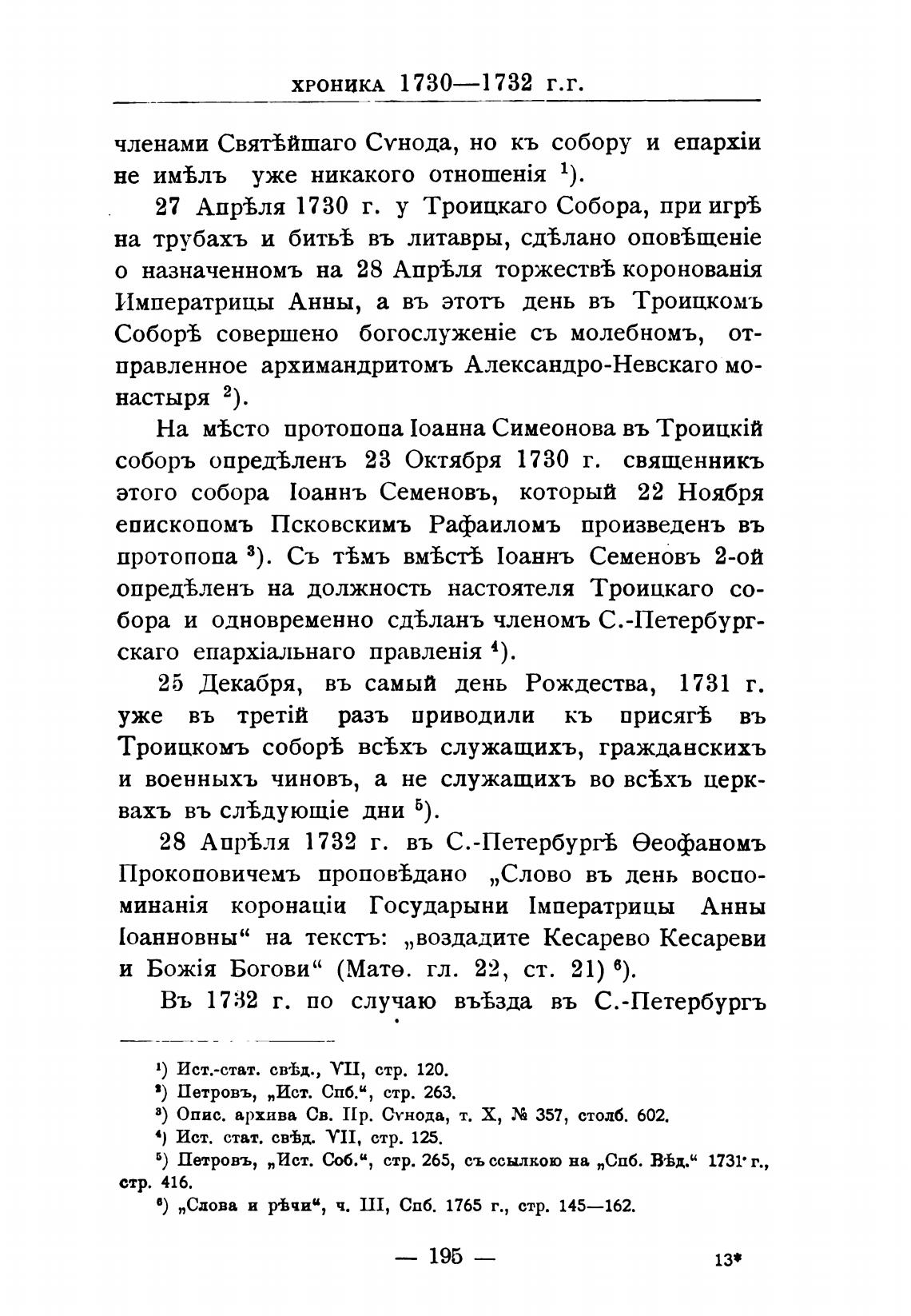б) Петровъ, „Ист. (Ы.и, стр. 265, съссылкою на „СПб. В•Ьд.и 1731• г.,