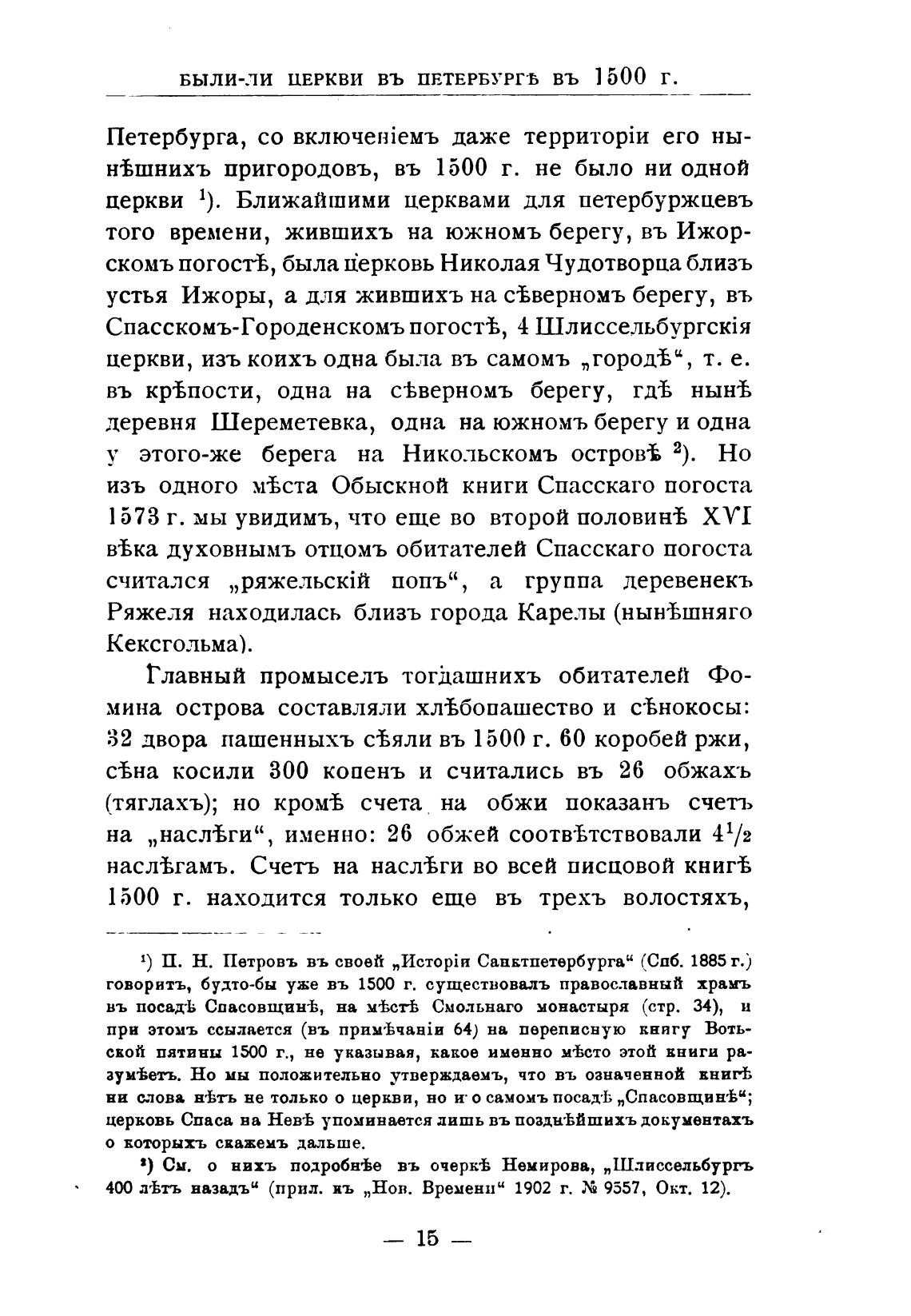 БЫЛИ-ЛИ ЦЕРКВИ ВЪ ПЕТЕРБУРГЪ ВЪ 1500 Г.