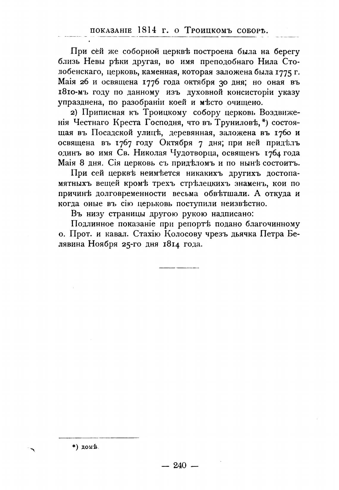 ПОКАЗАТЕ 1814 Г. О ТРОИЦКОМЪ СОБОРО.