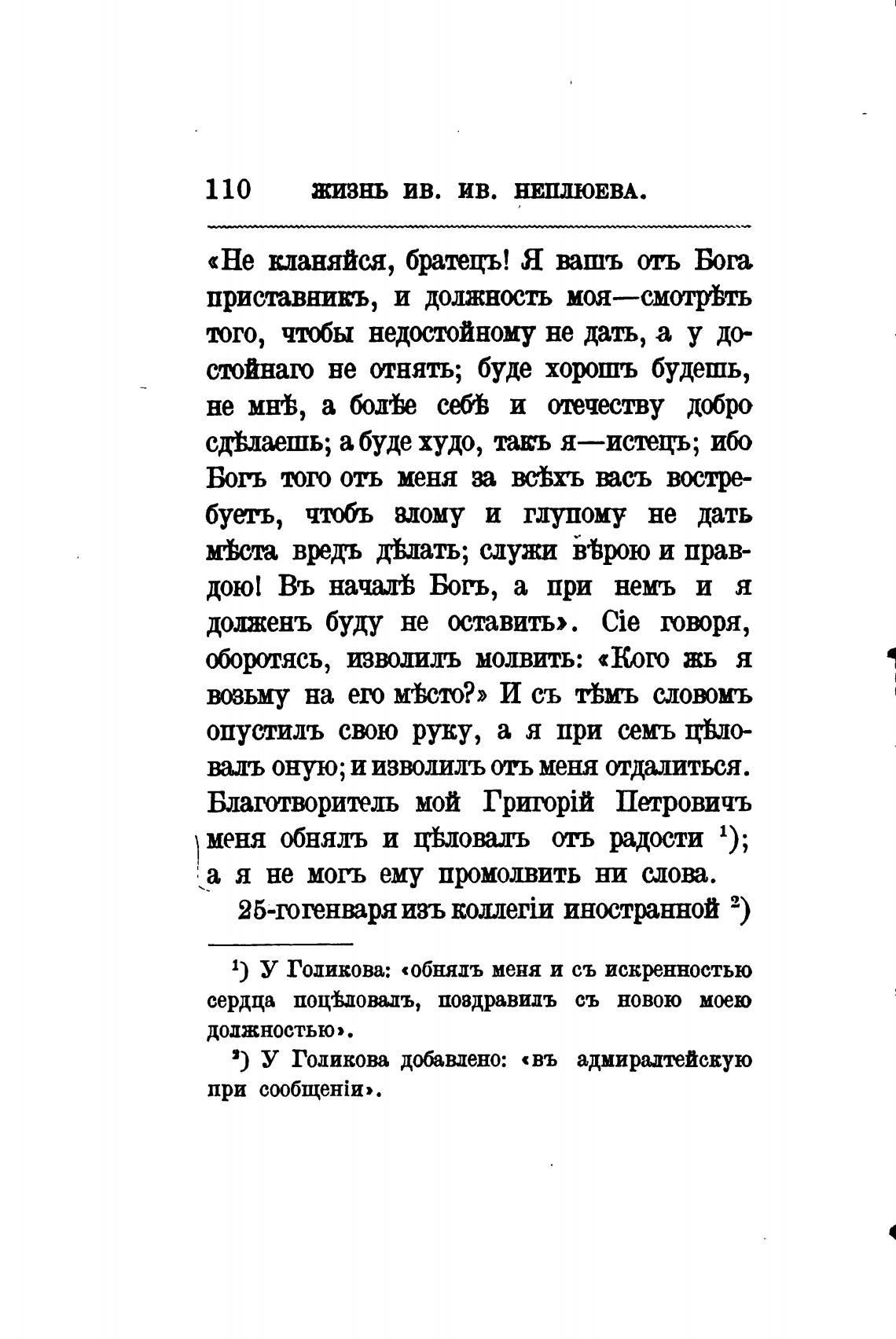 1) У Голикова: «обнядъ меня и съ искренностью