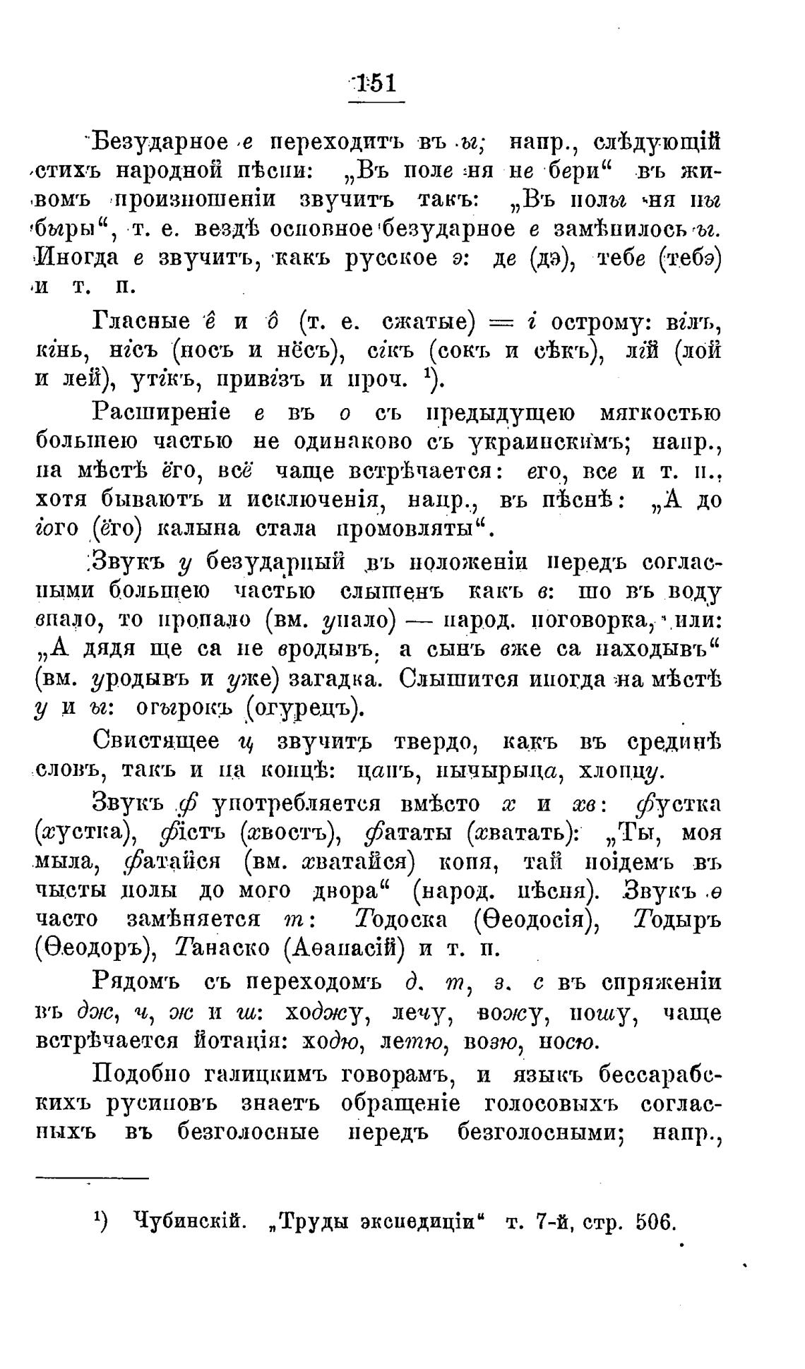 болыпею частью не одинаково съ украински•мъ; напр.,
