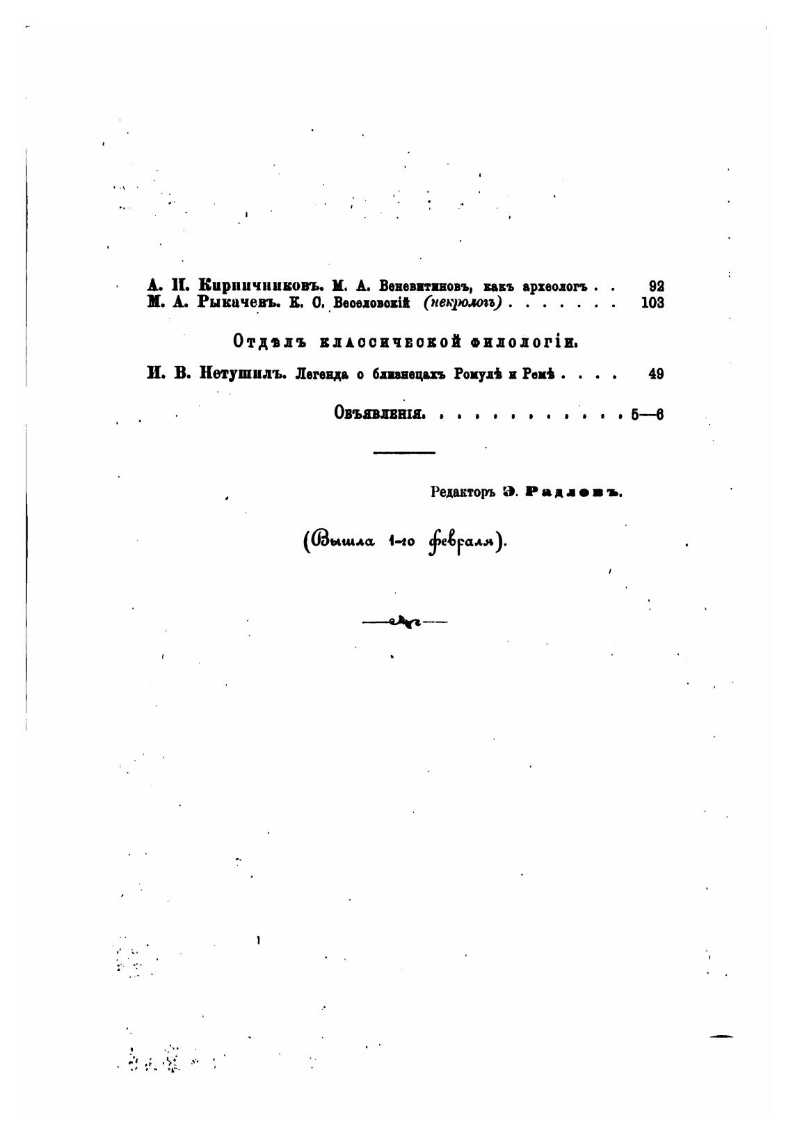 И. В. Нетушилъ. Легенда о бпввацвхъ Ромм и РВА . .