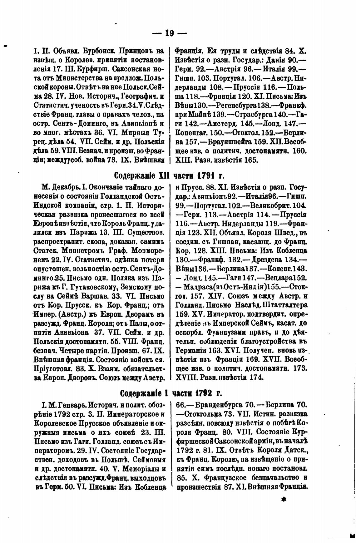 Содержань Xll части 1791 г.