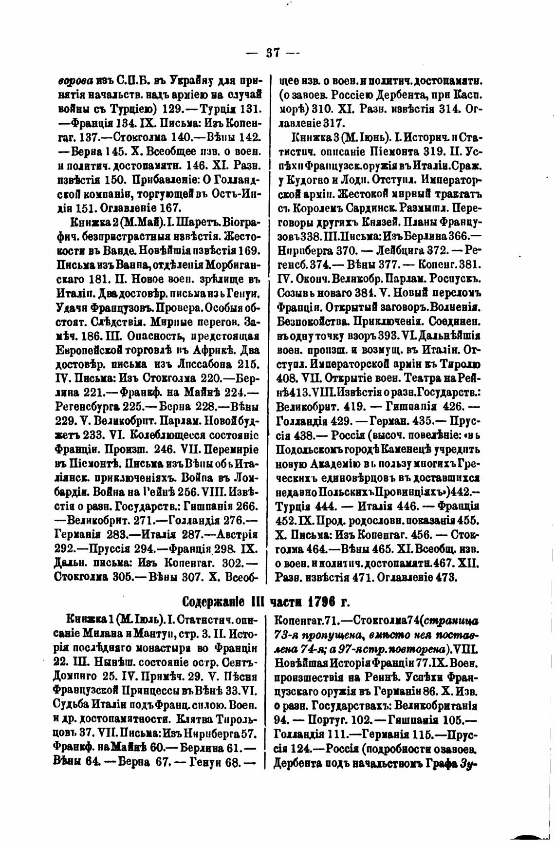 Содержание Ill части 1796 г.