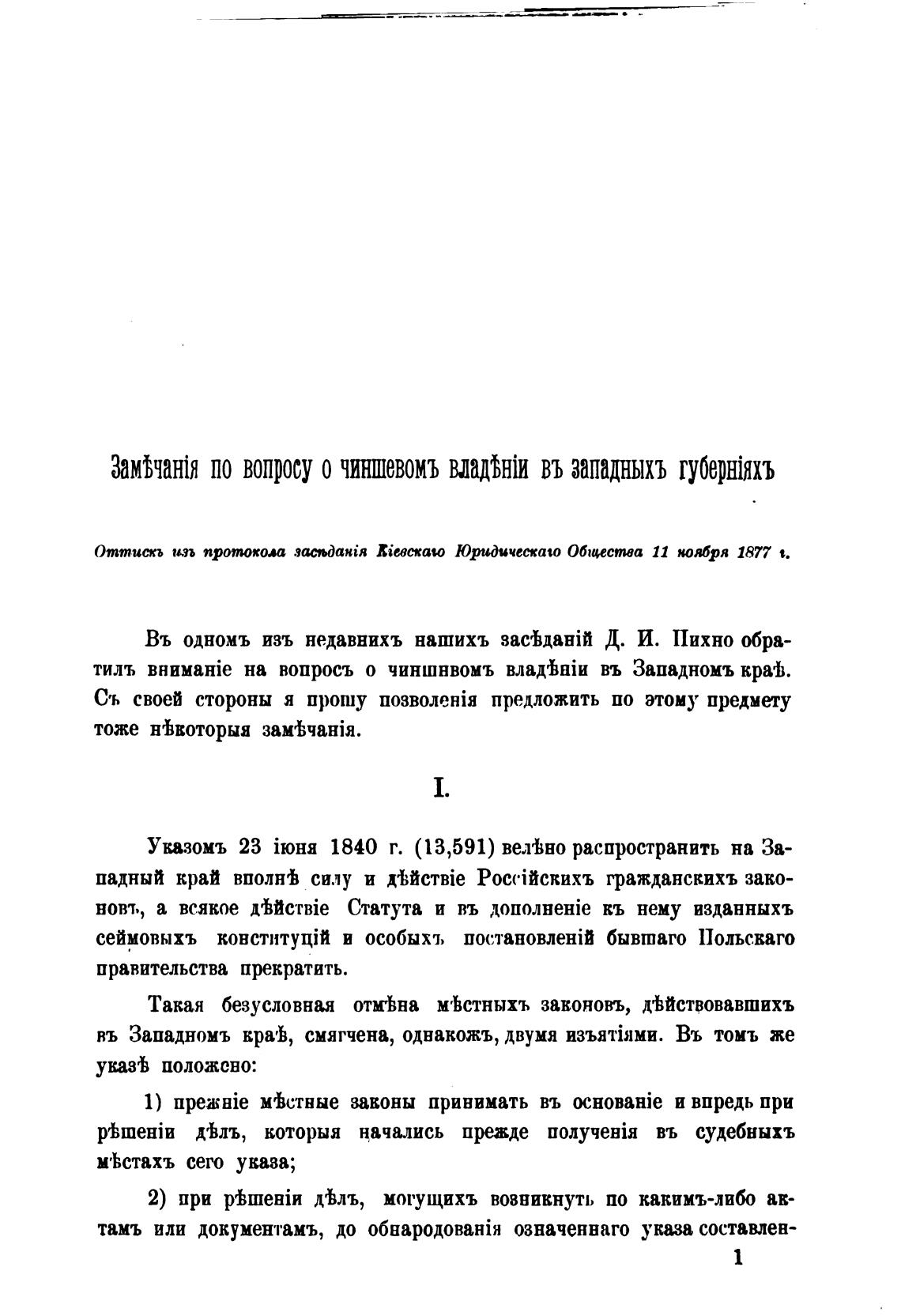 Оттискъ ил протоком Певскаш Юридическа•о Обмстаа 11 ноМря 1877