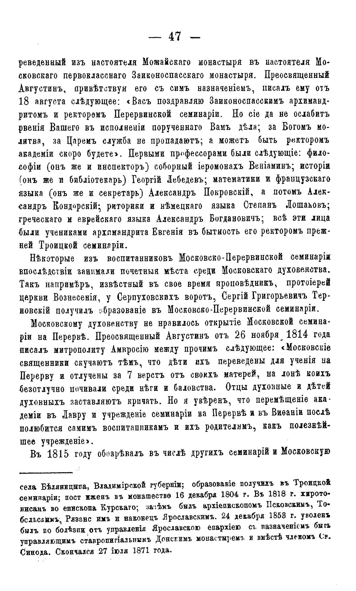 на Перерл. Преосвященный Августинъ отъ 26 ноября 1814 года
