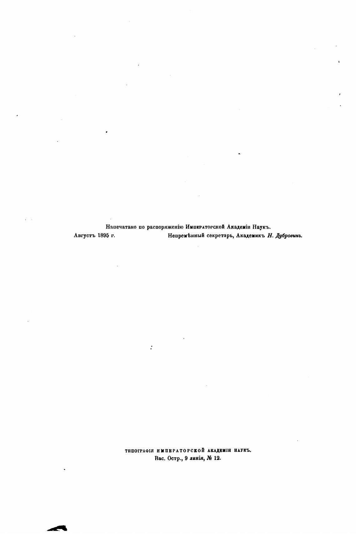 Напечатано по ИМПЕРАТОРСКОЙ АкадемП1 Наукъ.
