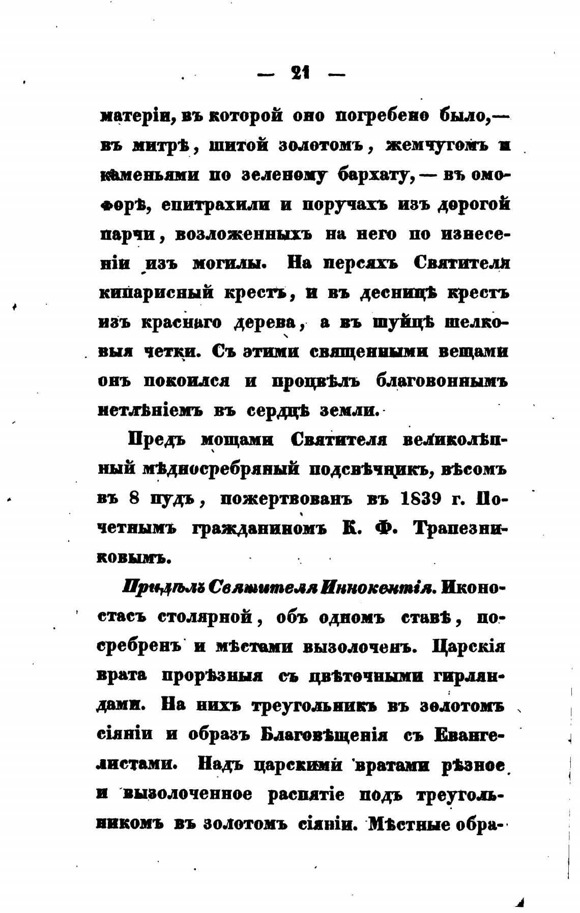 въ 8 нудь, пожертвовань въ 1839 г. По-
