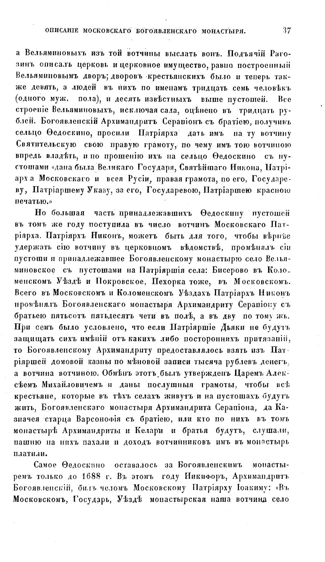 ОПИСАНIЕ МОСКОВСКАГО БОГОЯВЛЕНСКАГО МОНАСТЫРЯ.