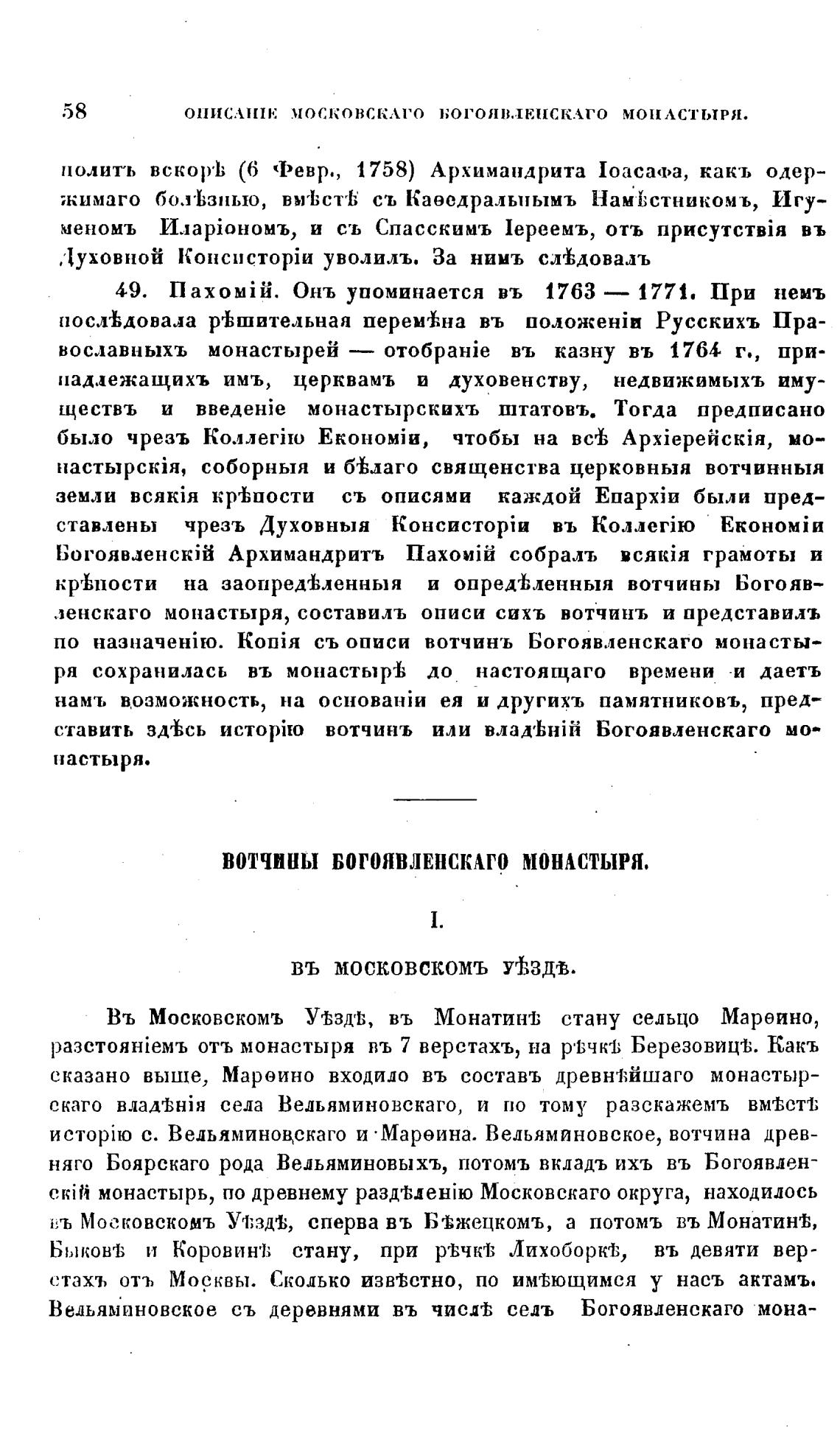 с. Ведьяминоцскаго и •Мареина. Вельяминовское, вотчина древ-