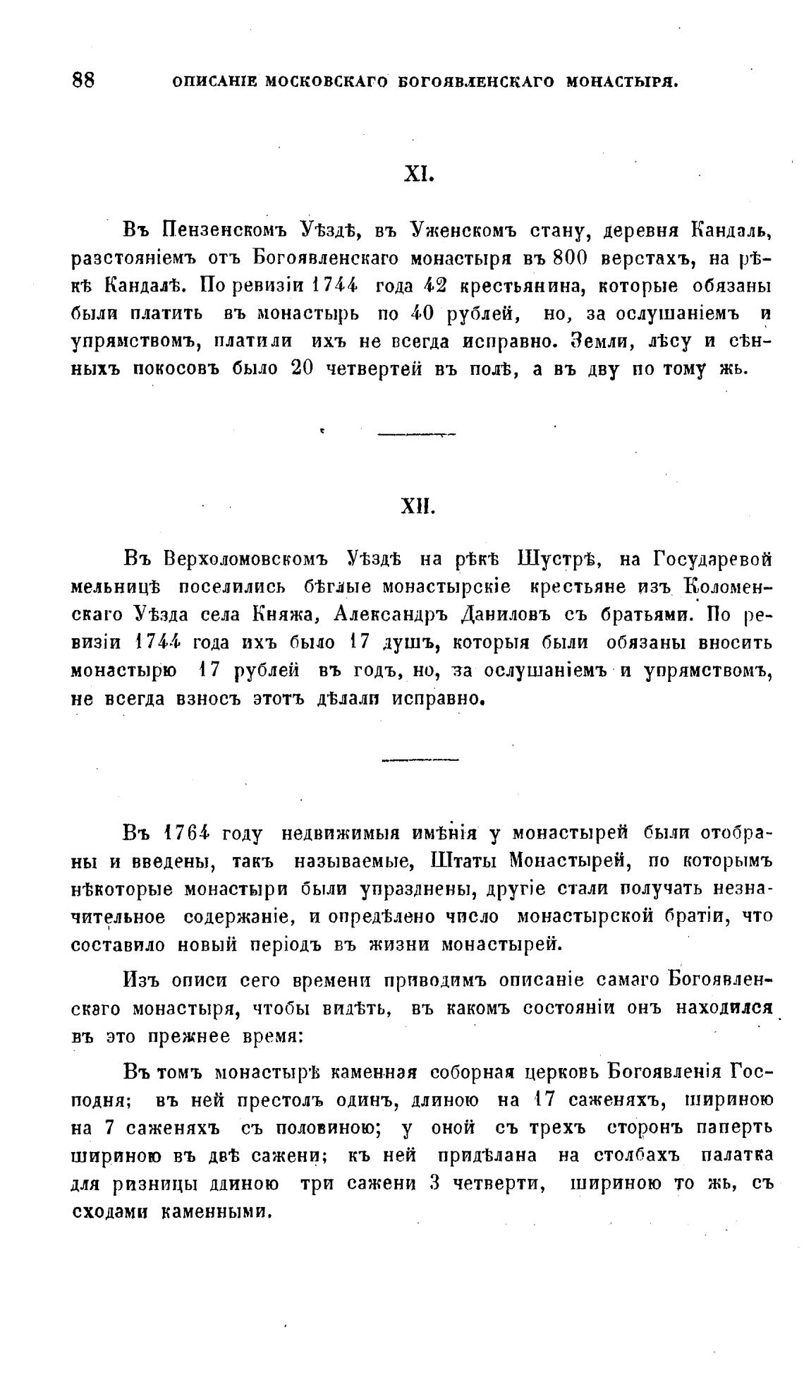 Въ 1764 году недвижимыя у монастырей были отобра-