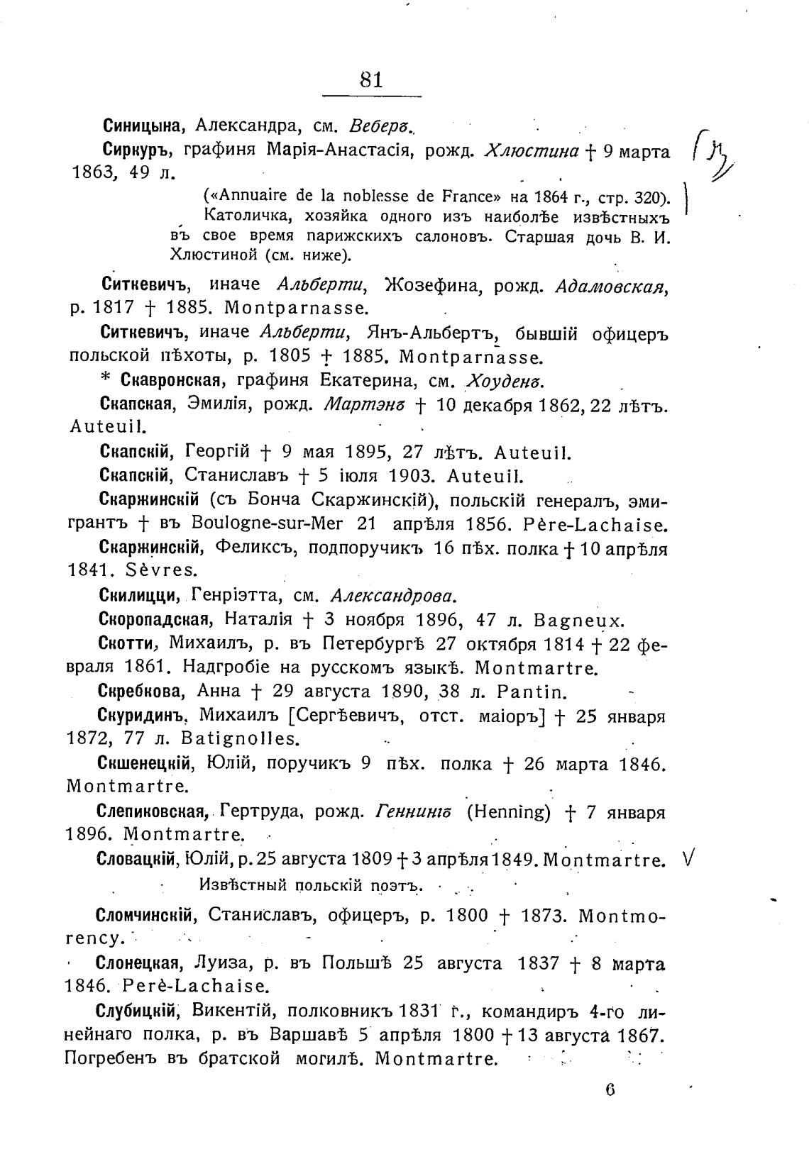 р. 25 августа 1809 ТЗ апрЪля1849. Montmartre.