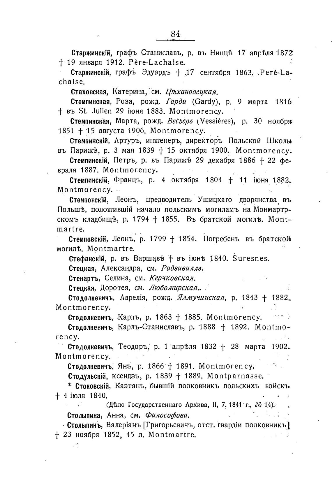 Стодолкевичъ, Янв, р. 1866-+ 1891. Montmoren су;