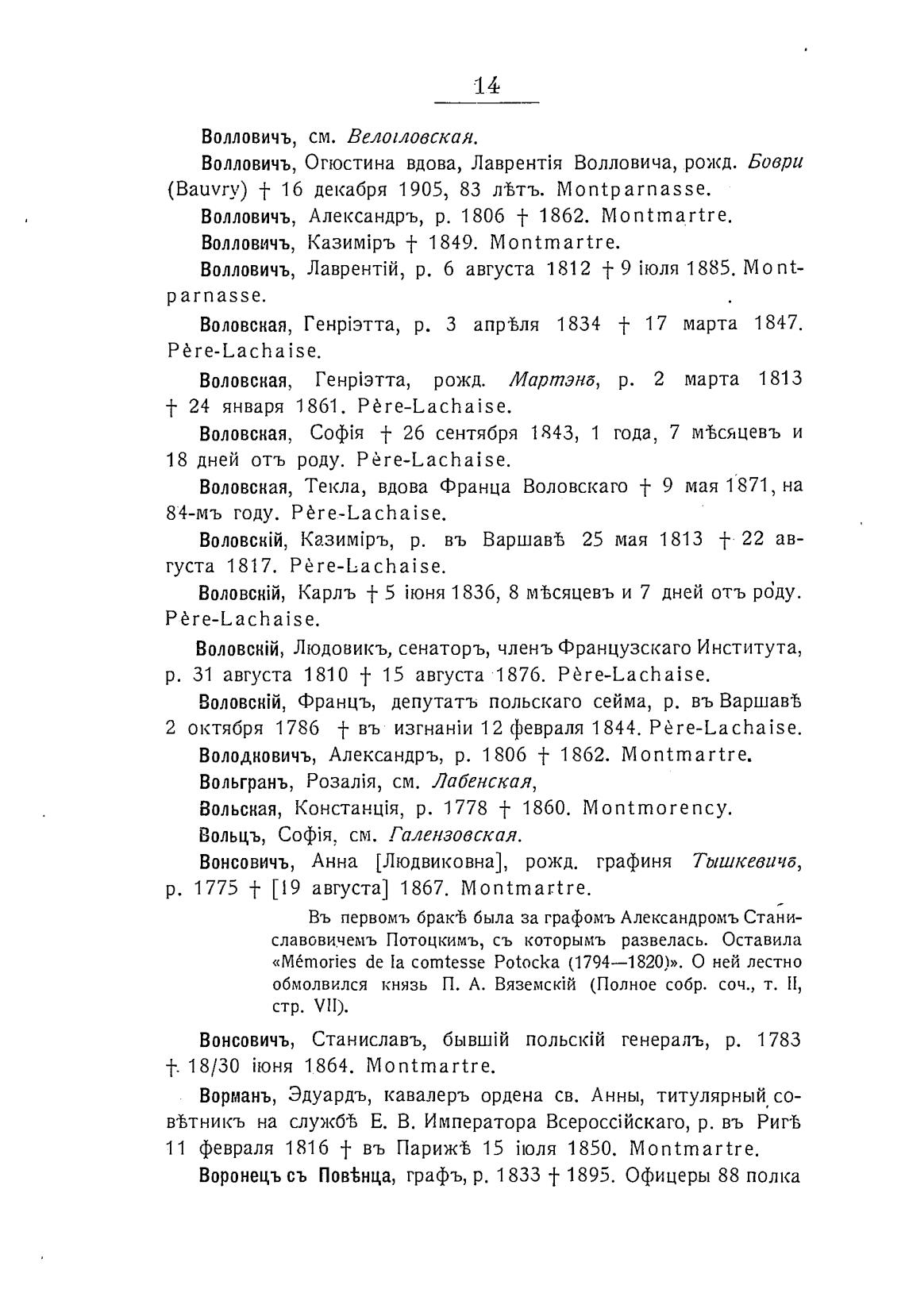 Волловичъ, Александръ, р. 1806 + 1862. Montmartre.
