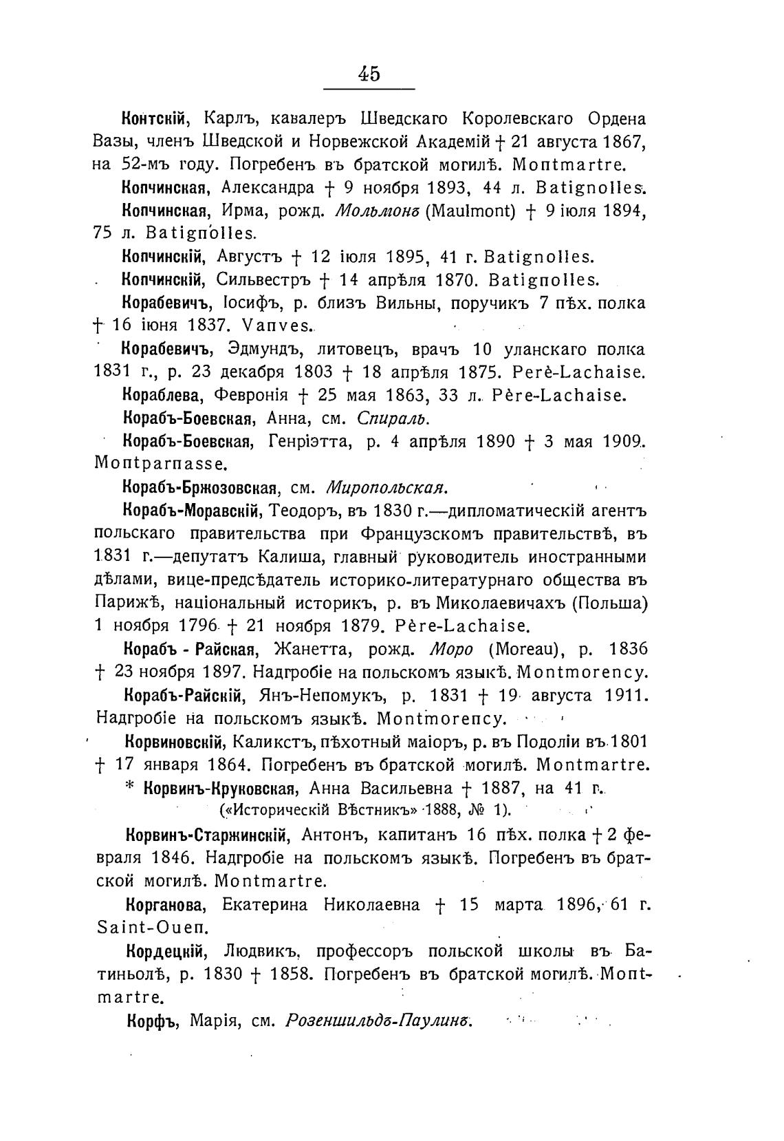 Копчинская, Александра + 9 ноября 1893, 44 л. Batignolles.