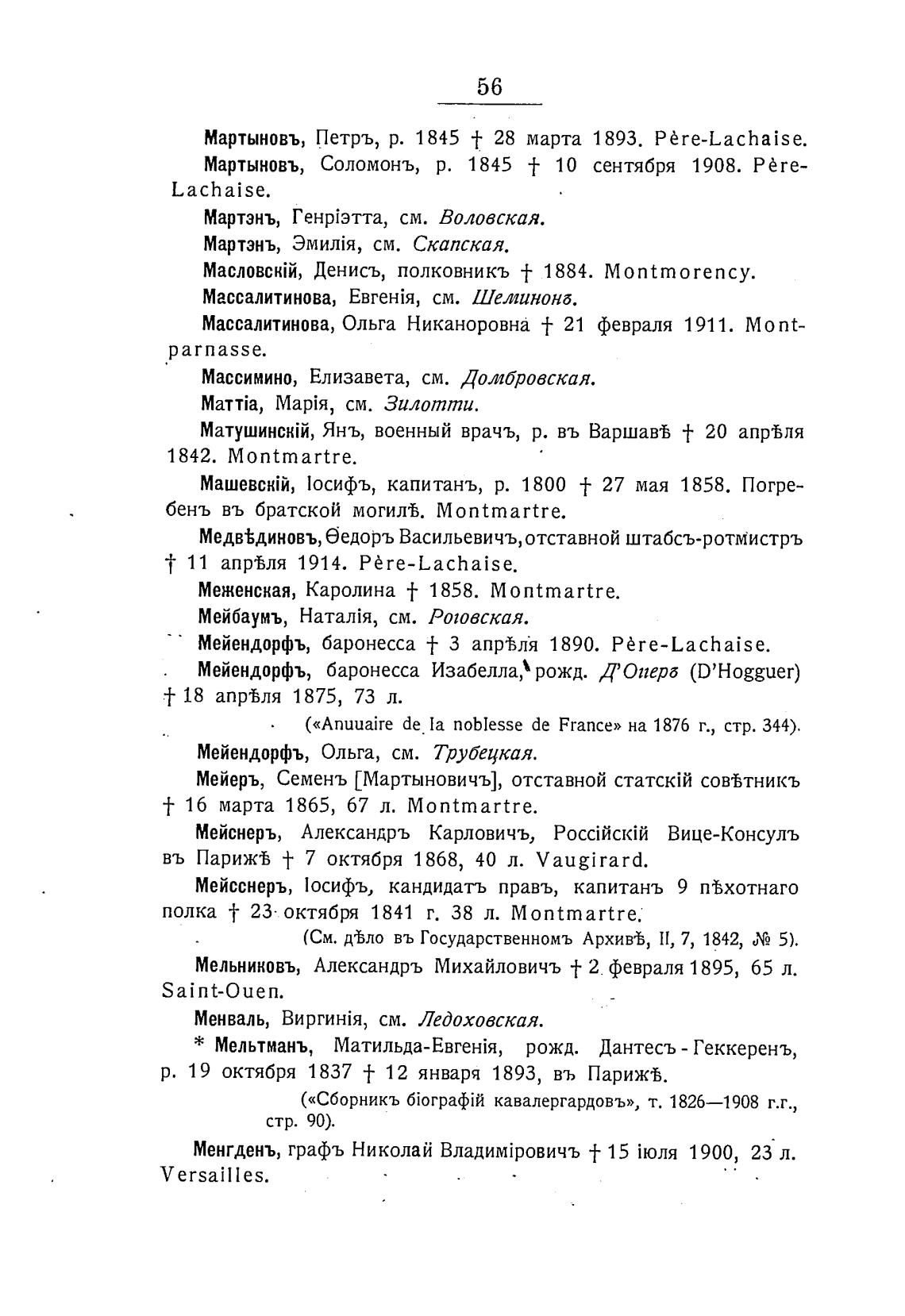 Меженсная, Каролина •f 1858. Montmartre.