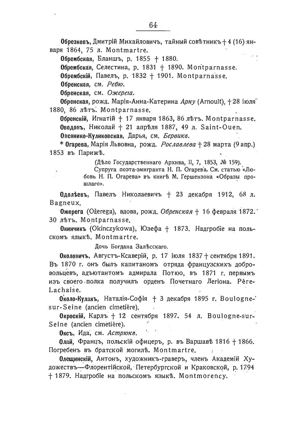 Оводовъ, Николай -f 21 апр%ля 1887, 49 л. Saint-Ouen.