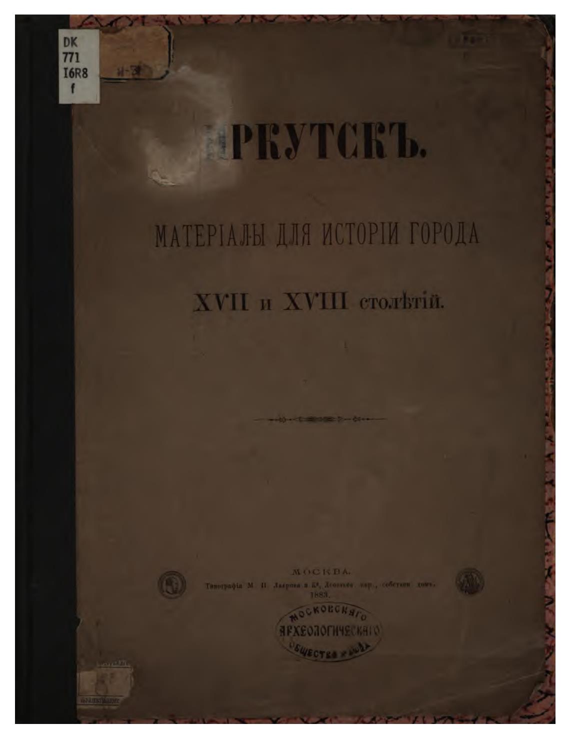 Иркутск. Материалы для истории города XVII и XVIII столетий - Николев И. Н. , Найденов Н. А.