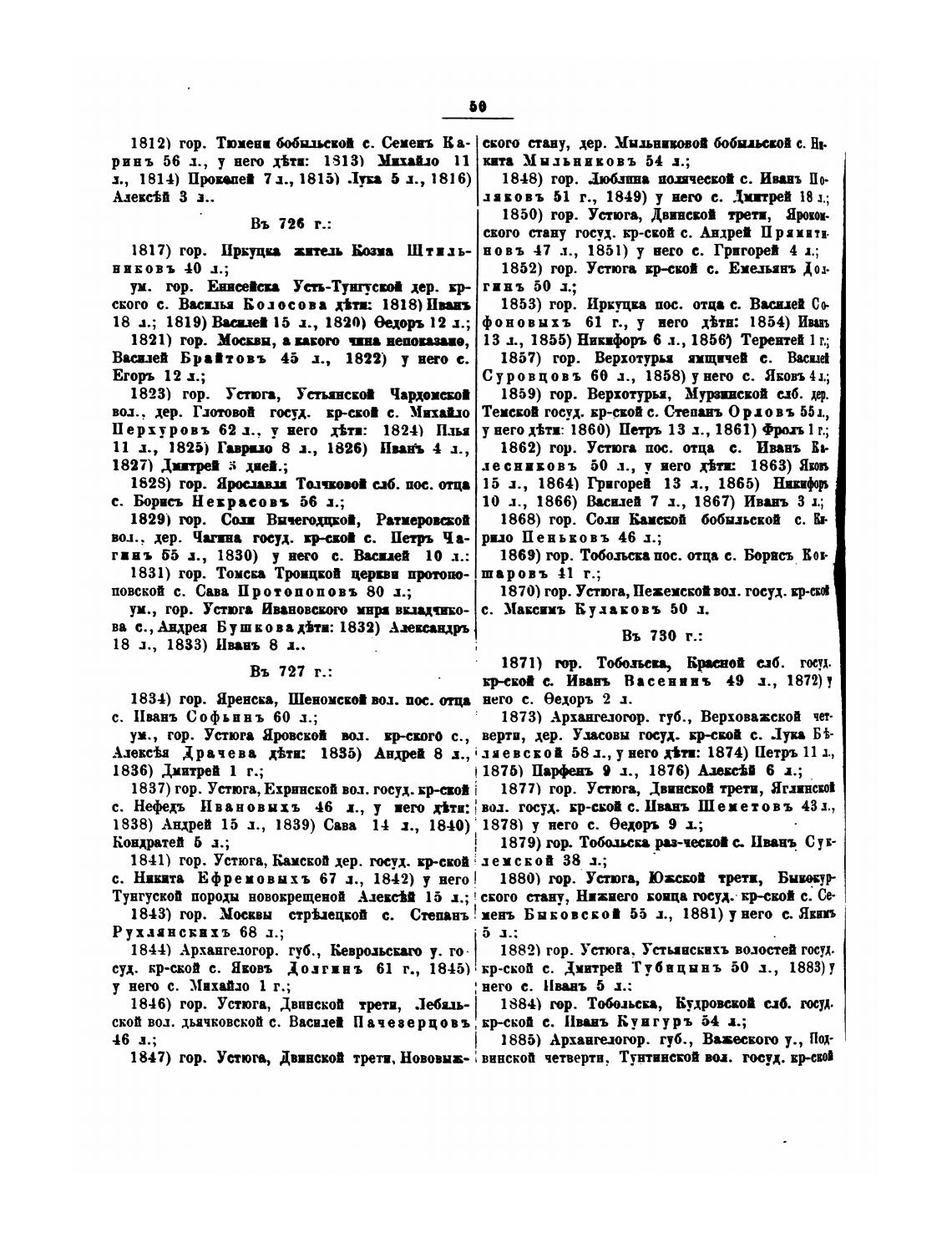 1846) гор. Устюга, ДвпвскоП .Ыиь- 1884) гор. Тобо.иьс;а, Вудрвской сдб. гчд.