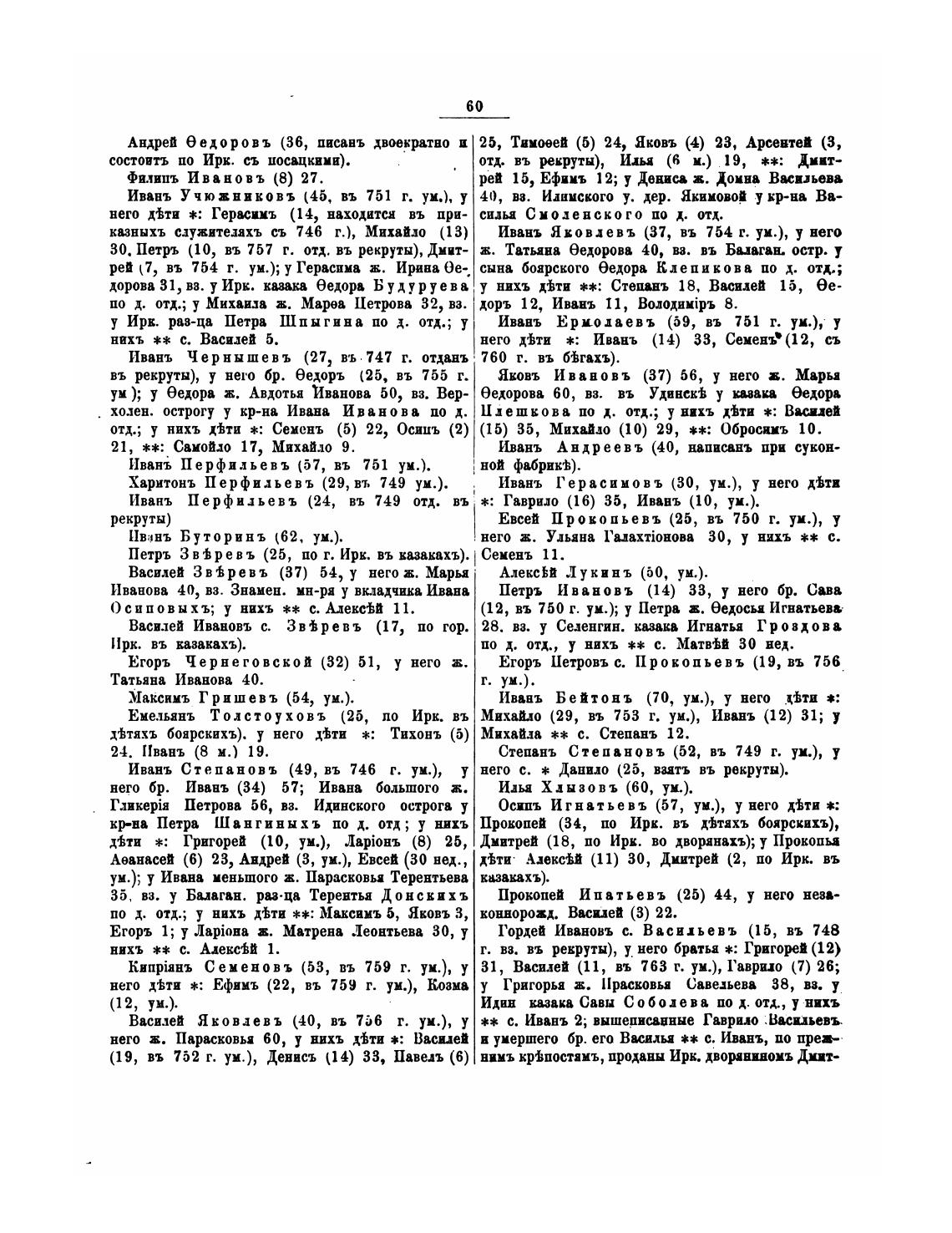 30. Петръ (10, въ 757 г. отд. въ рекруты), Дмит- ж. Татьана 40, вв. въ Балаган. остр. у