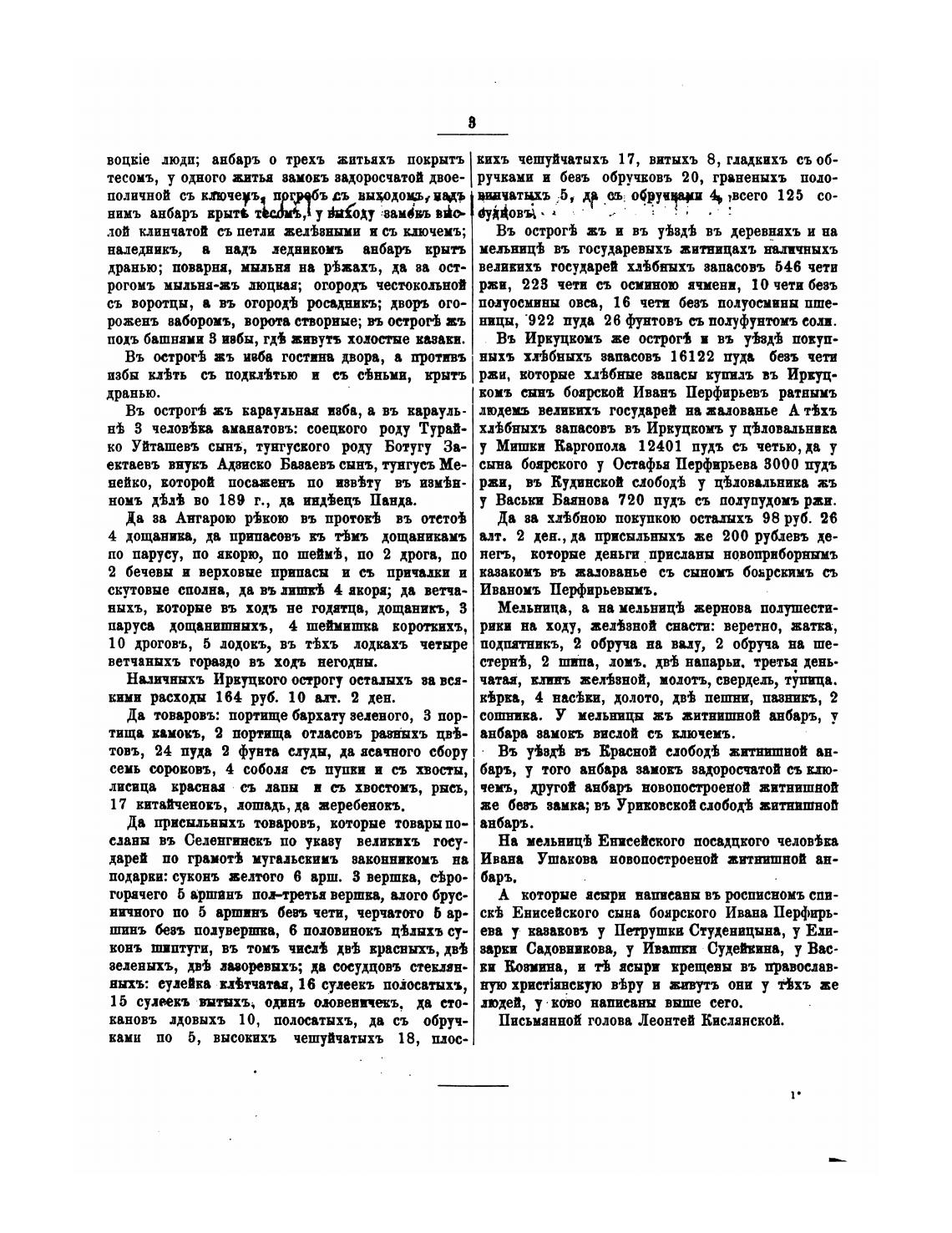 Письмянной голова Леонтей Кисланской.