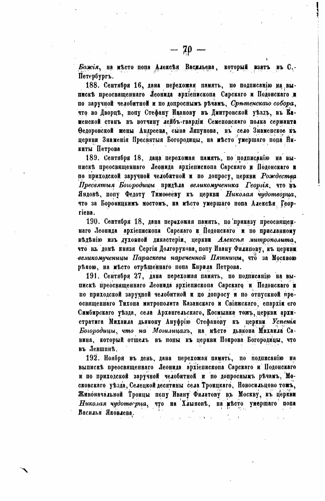 190. Сентября 18, дана перехожая память, по 'приказу преосвящен-